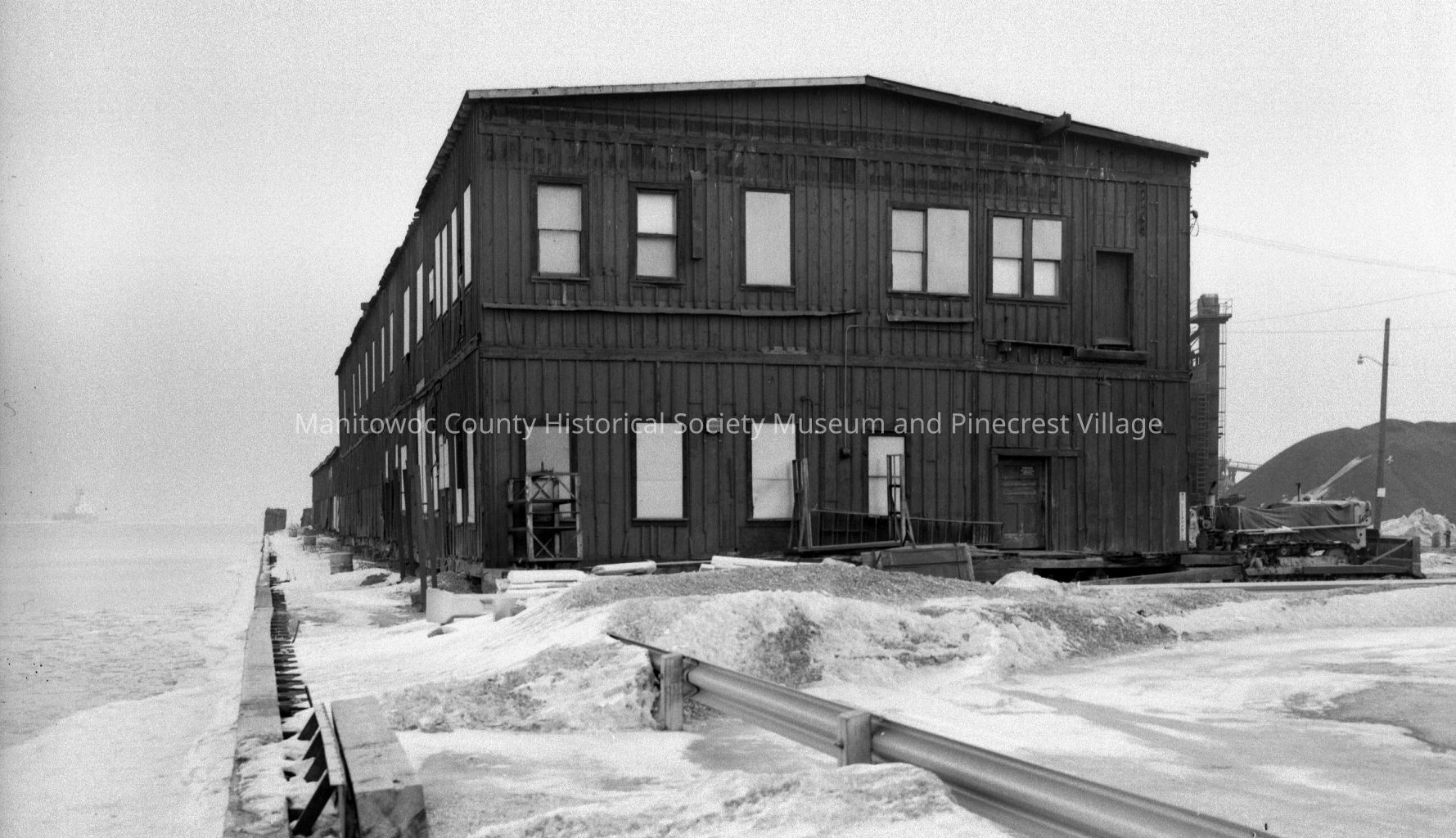 Pauly Cheese Company, 510 Quay Street Manitowoc. Looking at front of building along river front. Photograph taken on February 18th, 1970.Made/Created
