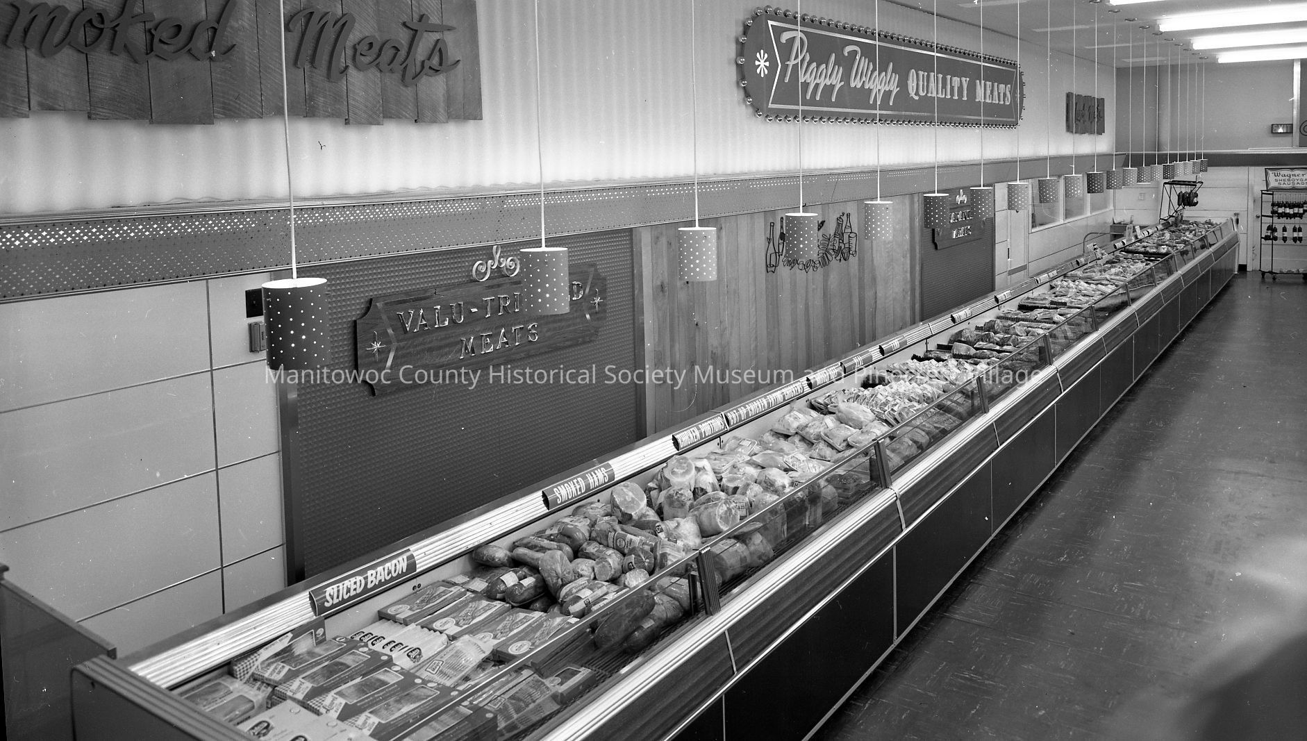 Piggly Wiggly Grocery Store, 1339 North 8th Street Manitowoc, meat cooler. Photograph taken on June 22nd, 1964.Made/Created