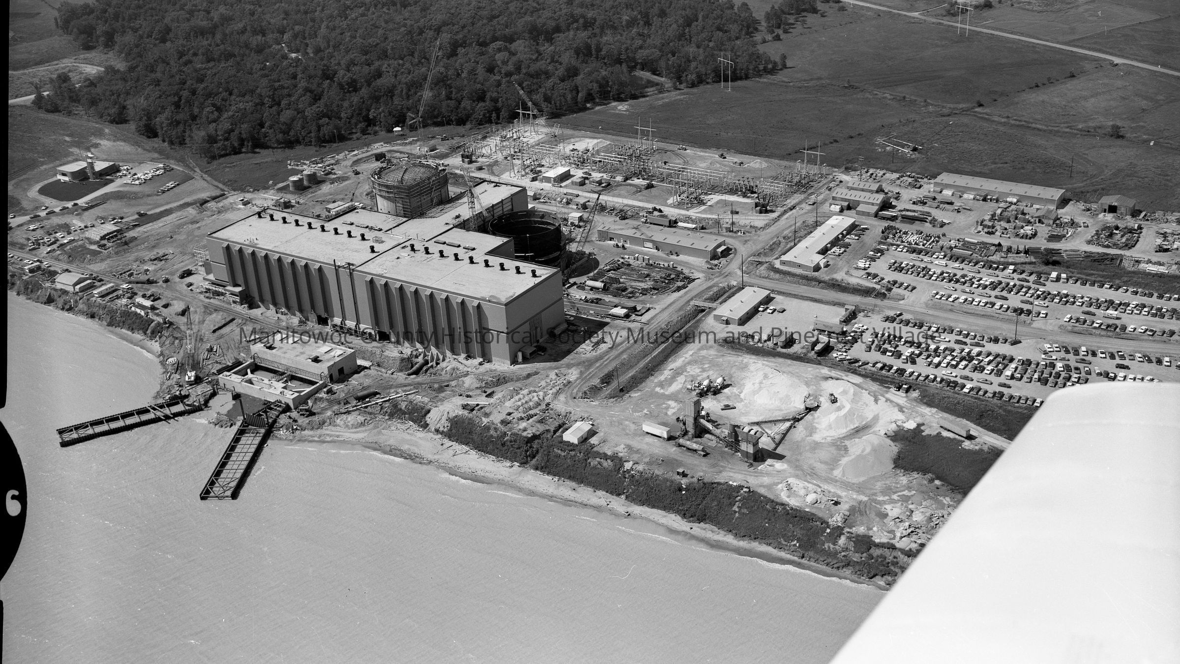 Aerial of Point Beach Nuclear Power Plant in the township of Two Creeks being built. Photograph taken in July 1969.Made/Created