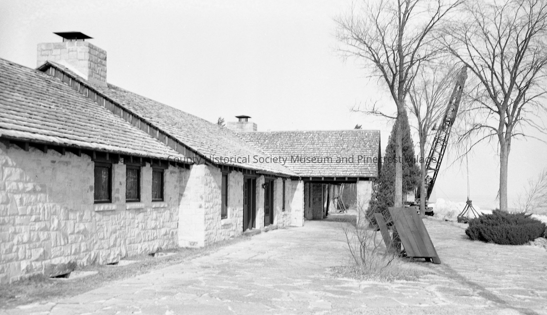 Looking at lakeside of the fieldhouse at Point Beach State Forest, north of Two Rivers. Photograph taken in December 1974.Made/Created