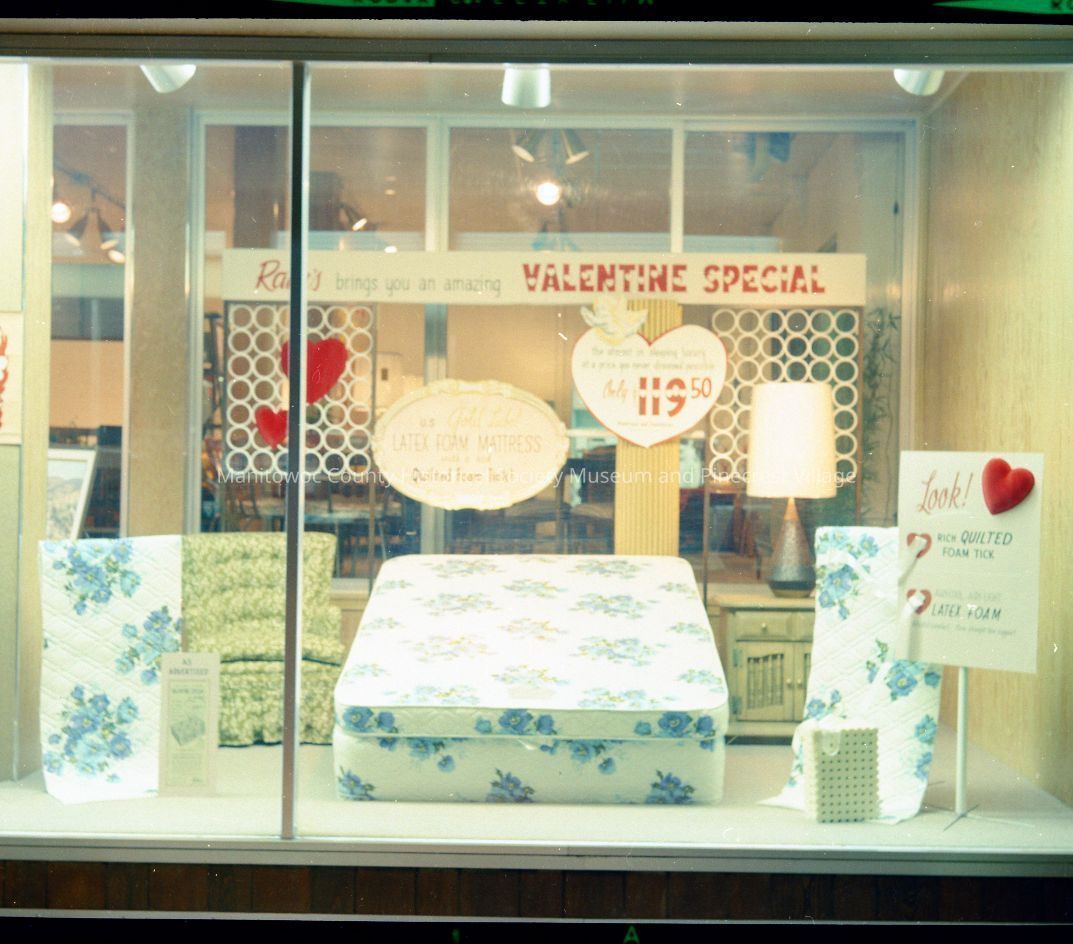 Rahr Furniture, 1011 South 10th Street Manitowoc; window display. Photograph taken on February 13th, 1965.