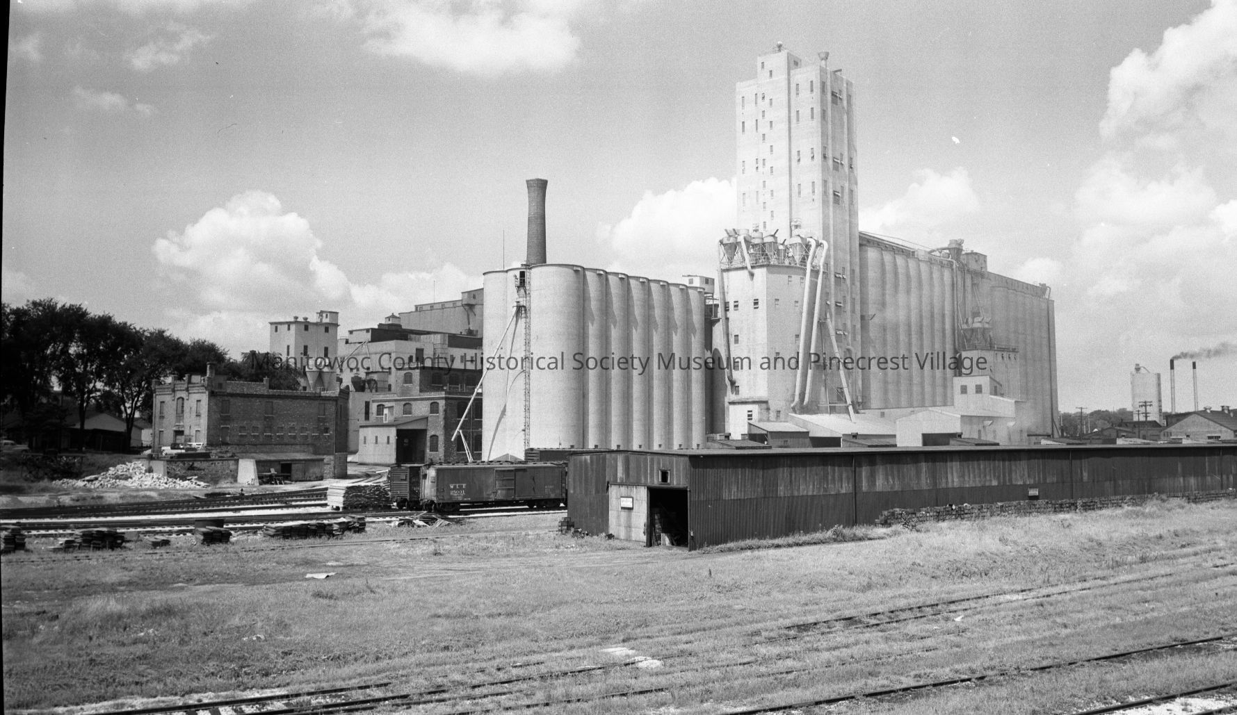 Rahr Malting, looking at backside. Photo taken from railyard near carferry slip looking northwest. Photograph taken in 1956.Made/Created