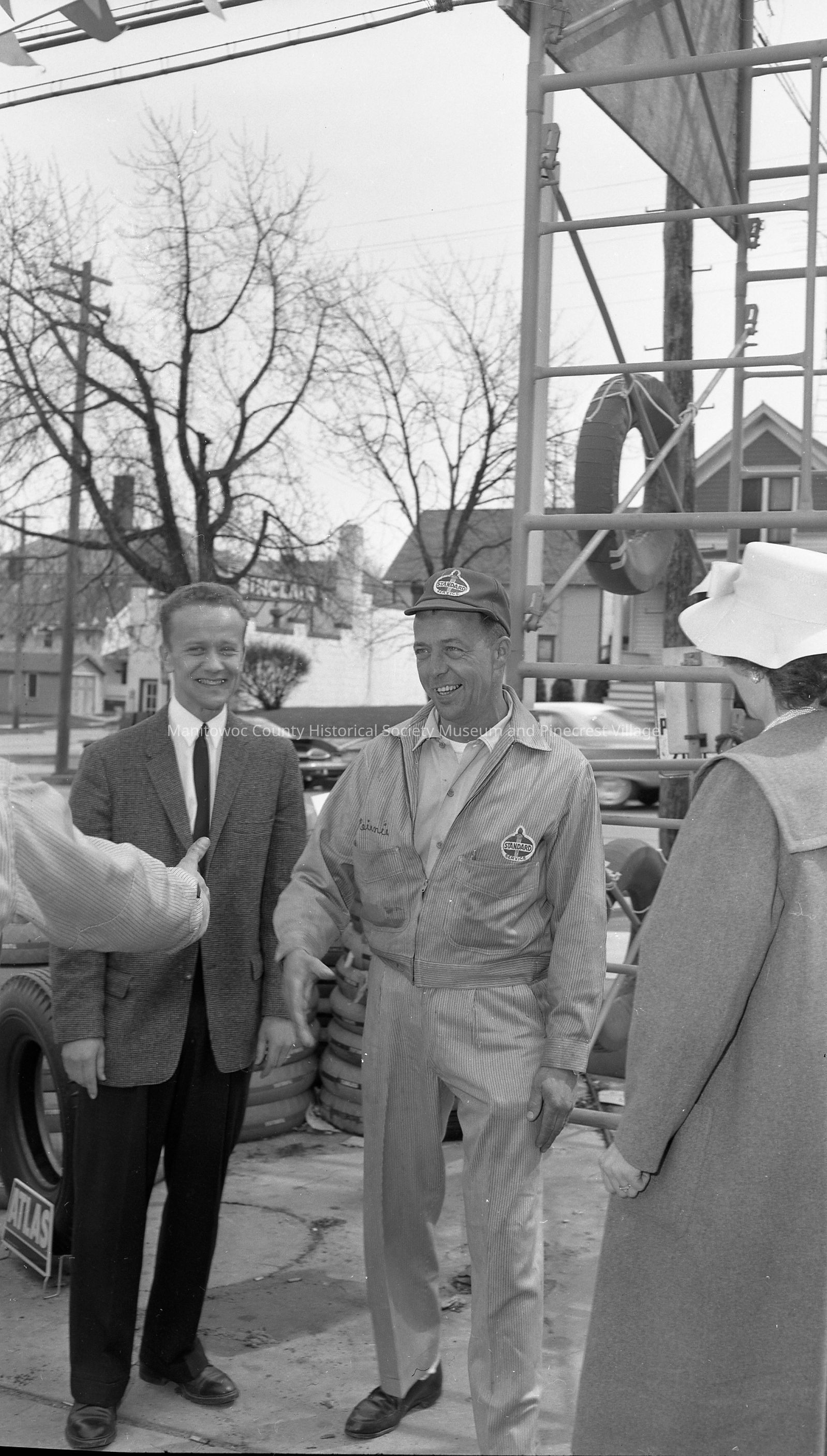 Rinnie Wagner's Standard Station, 1902 Washington Street, Manitowoc -- "good Luck'' before going up tower to sell 400 tires