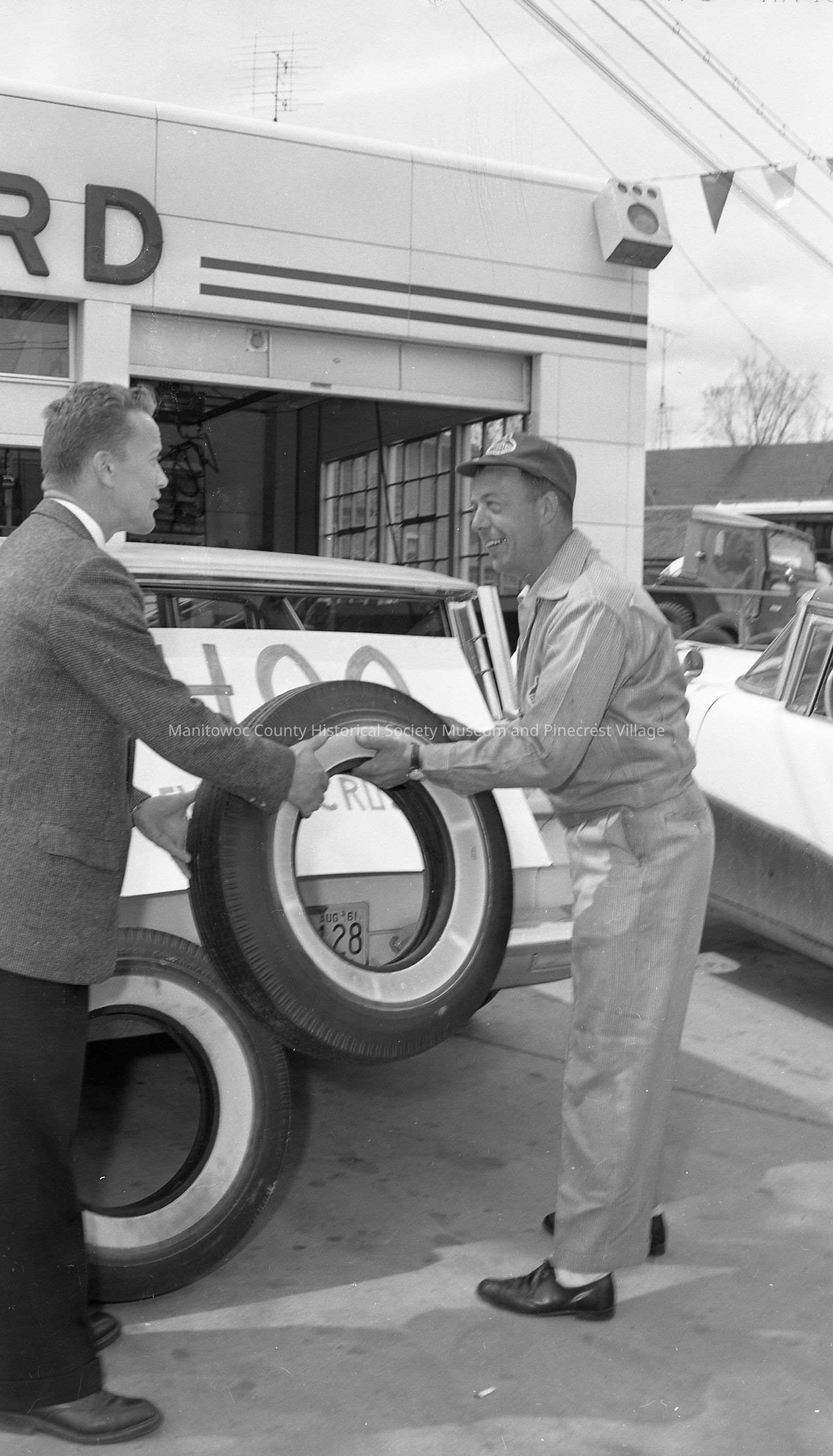 Reinnie Wagner's Standard Station, 1902 Washington Street, Manitowoc -- greeting customer