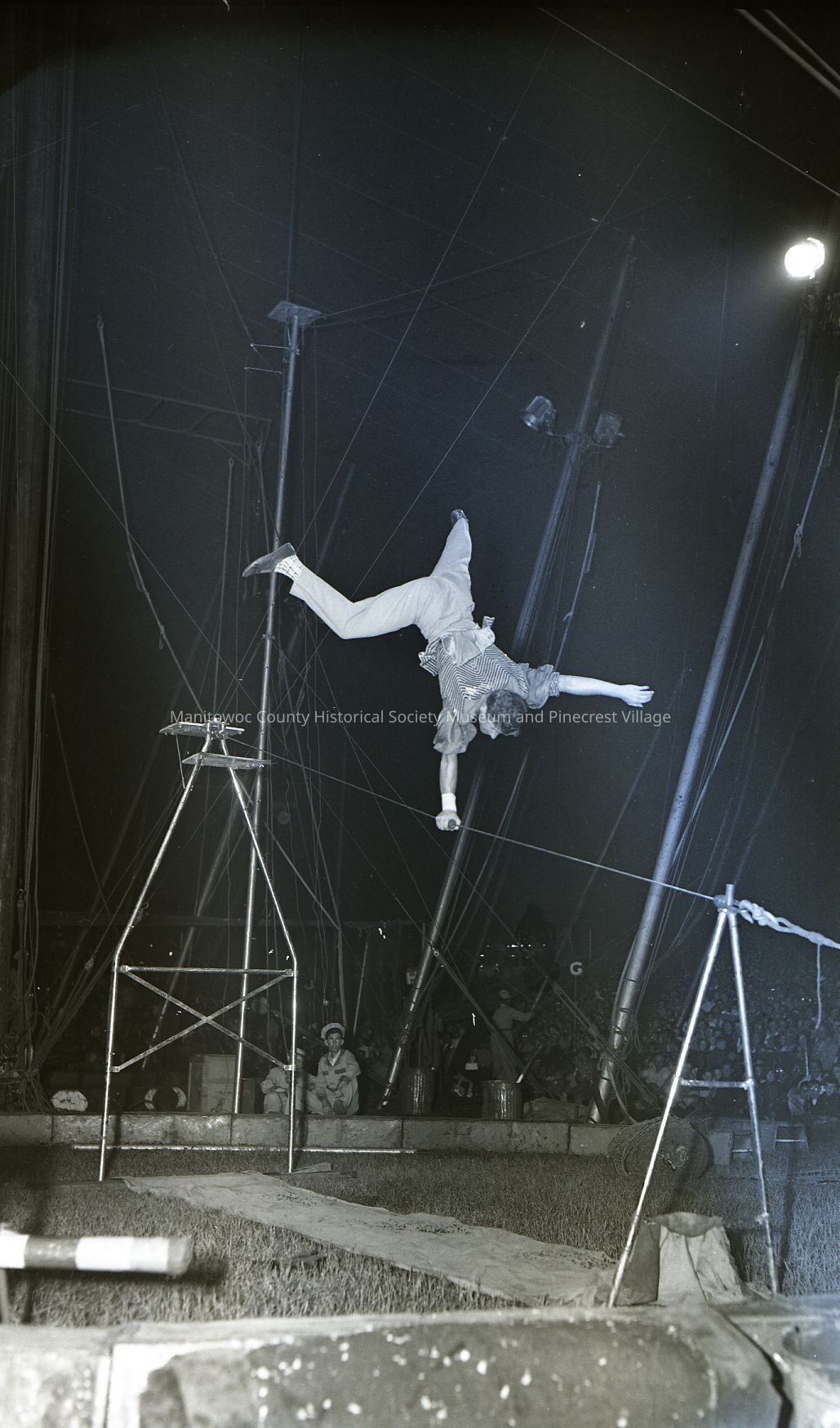 Ringling Bros. Circus performing under the big top at Manitowoc County Fairgrounds. Photograph taken on August 2nd, 1953.Made/Created