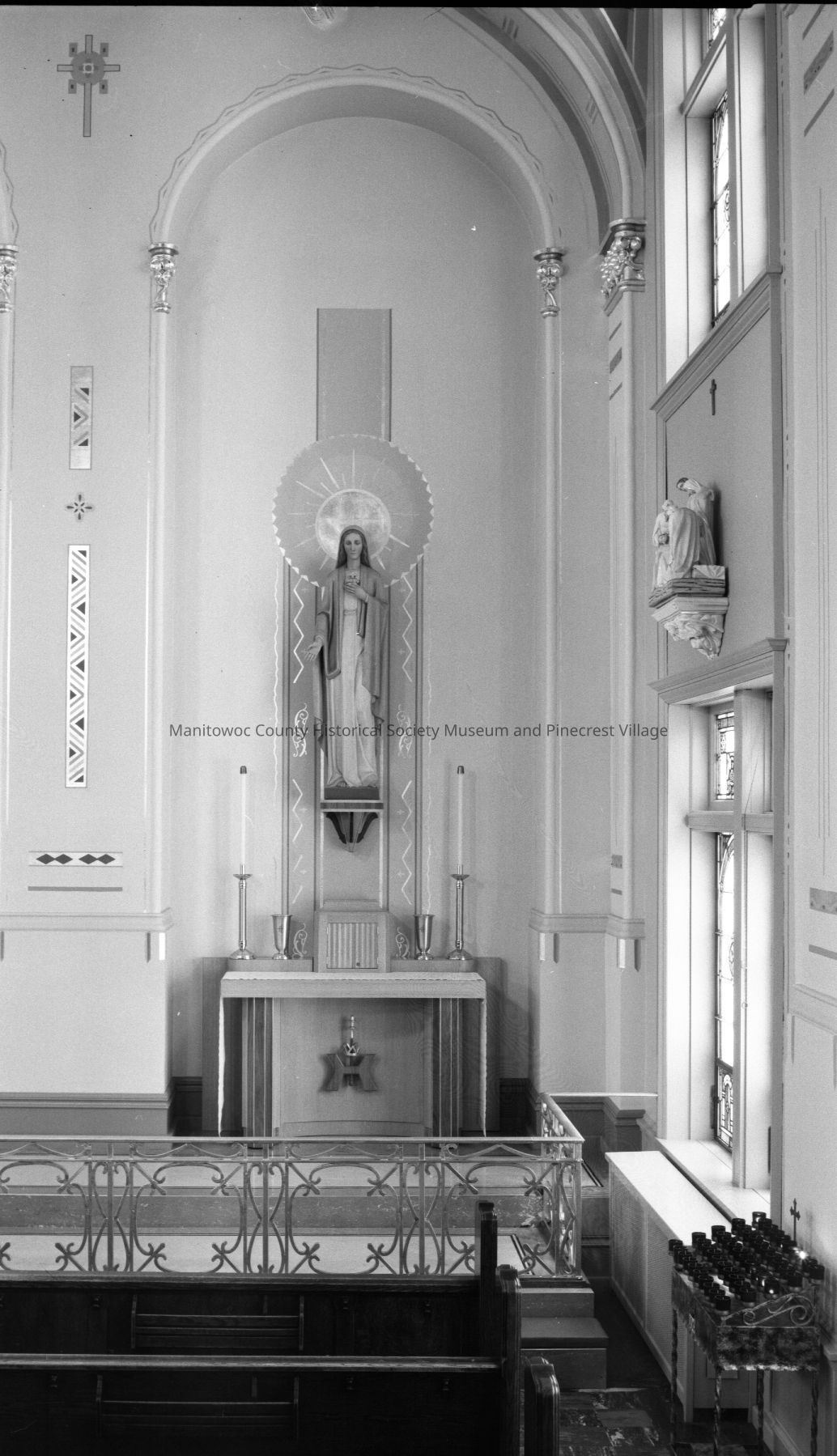 Sacred Heart Catholic church, 702 State Street Manitowoc; right side of altar. Photograph taken in March 1961.Made/Created