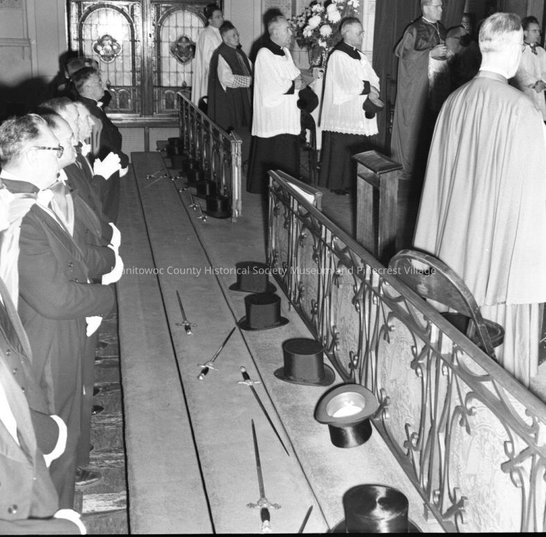 Sacred Heart Catholic school, 702 State Street Manitowoc; dedication. Photograph taken in 1952.
