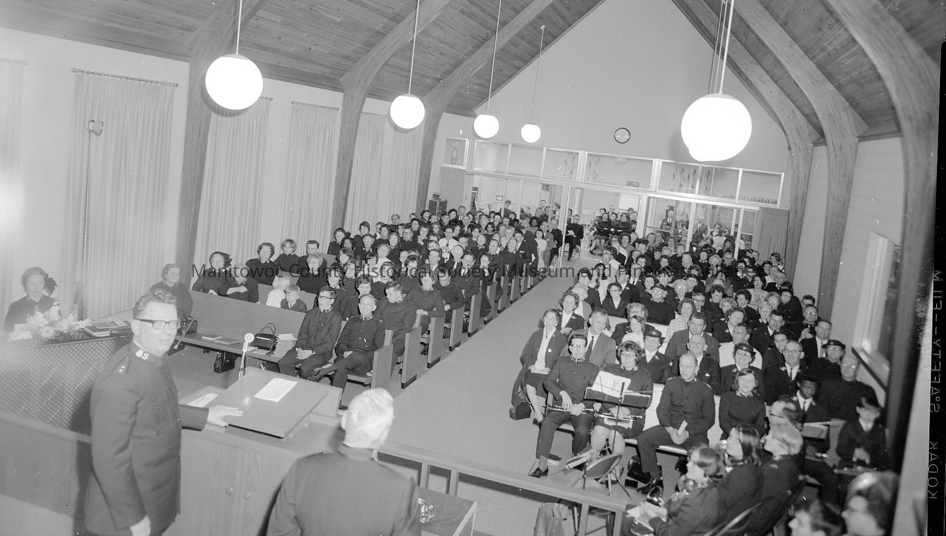 Salvation Army Building, 415 North 6th Street Manitowoc, members meeting in chapel. Photograph taken on March 29th, 1968.Made/Created