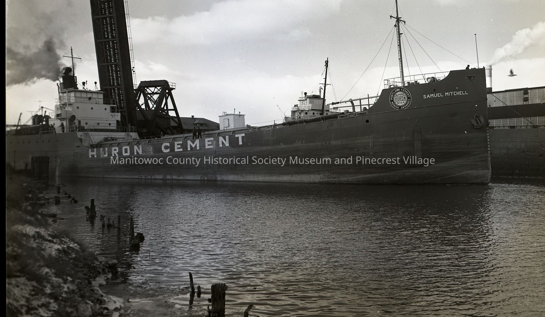 Samuel Mitchell coming through the kacknife bridge for winter lay-up at Manitowoc Shipbuilding. The Otto Reiss in background. Photograph taken on December 12th, 1951.Made/Created