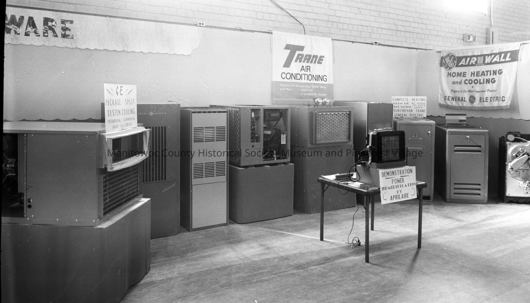 Schaus Hardware GE heating & cooling display at home show at Manitowoc Armory. Photograph taken on March 21st, 1964.Made/Created
