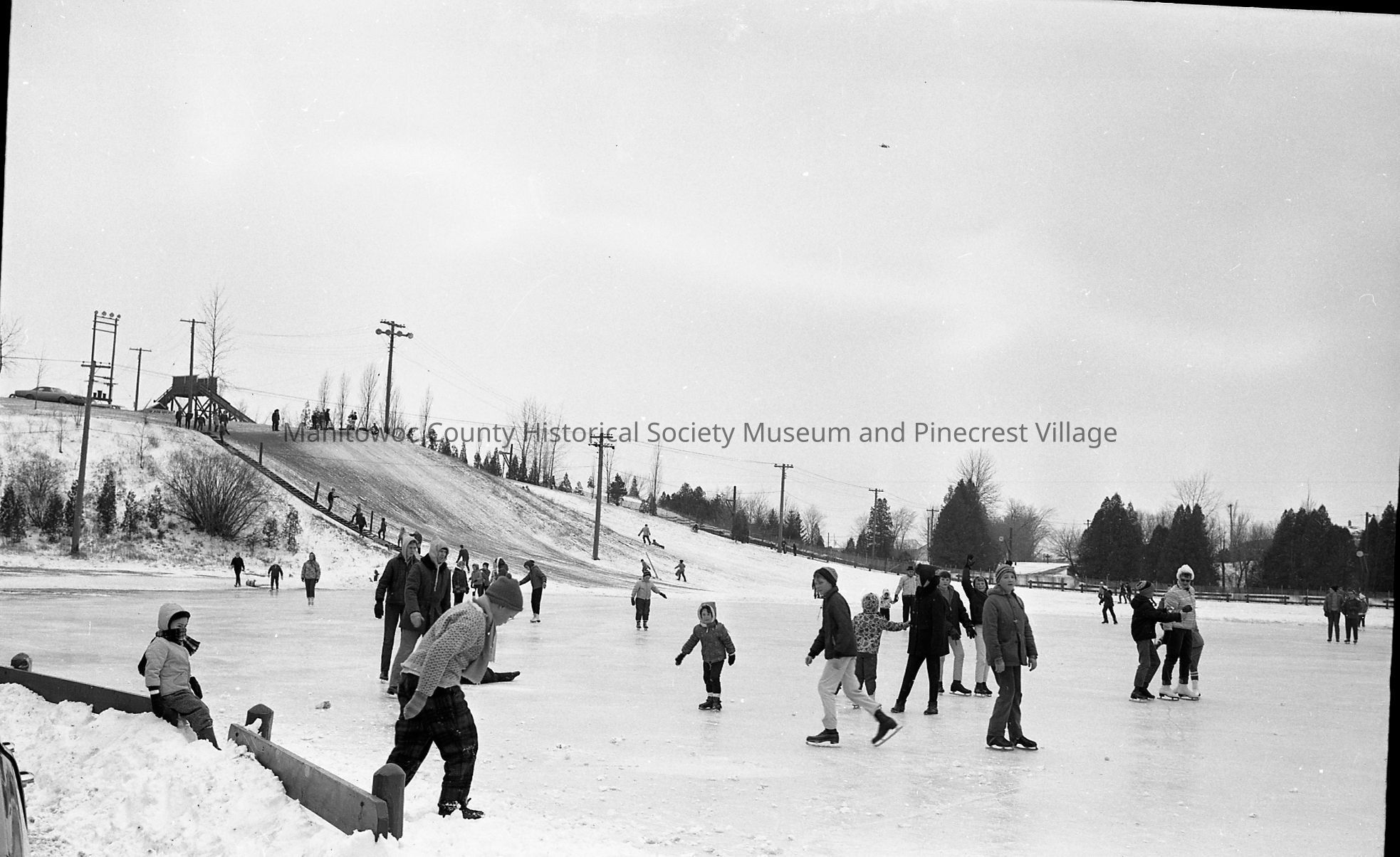 Silver Creek Park, Manitowoc: ice skating rink with sledding hill and tobaggan slide in background