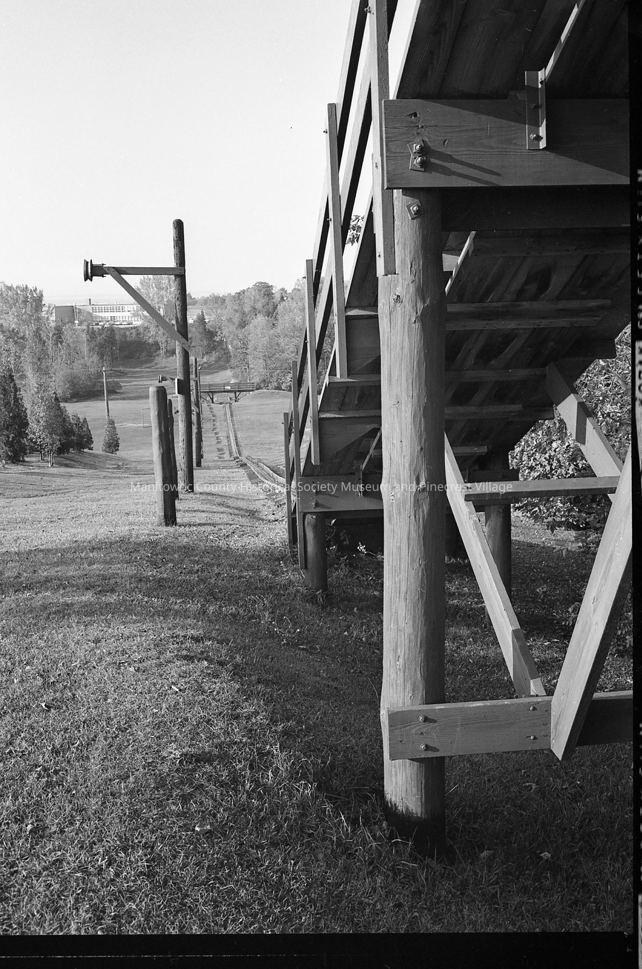 Silver Creek Park tobaggan slide, Manitowoc: looking down route to the bottom of hill and beyond.