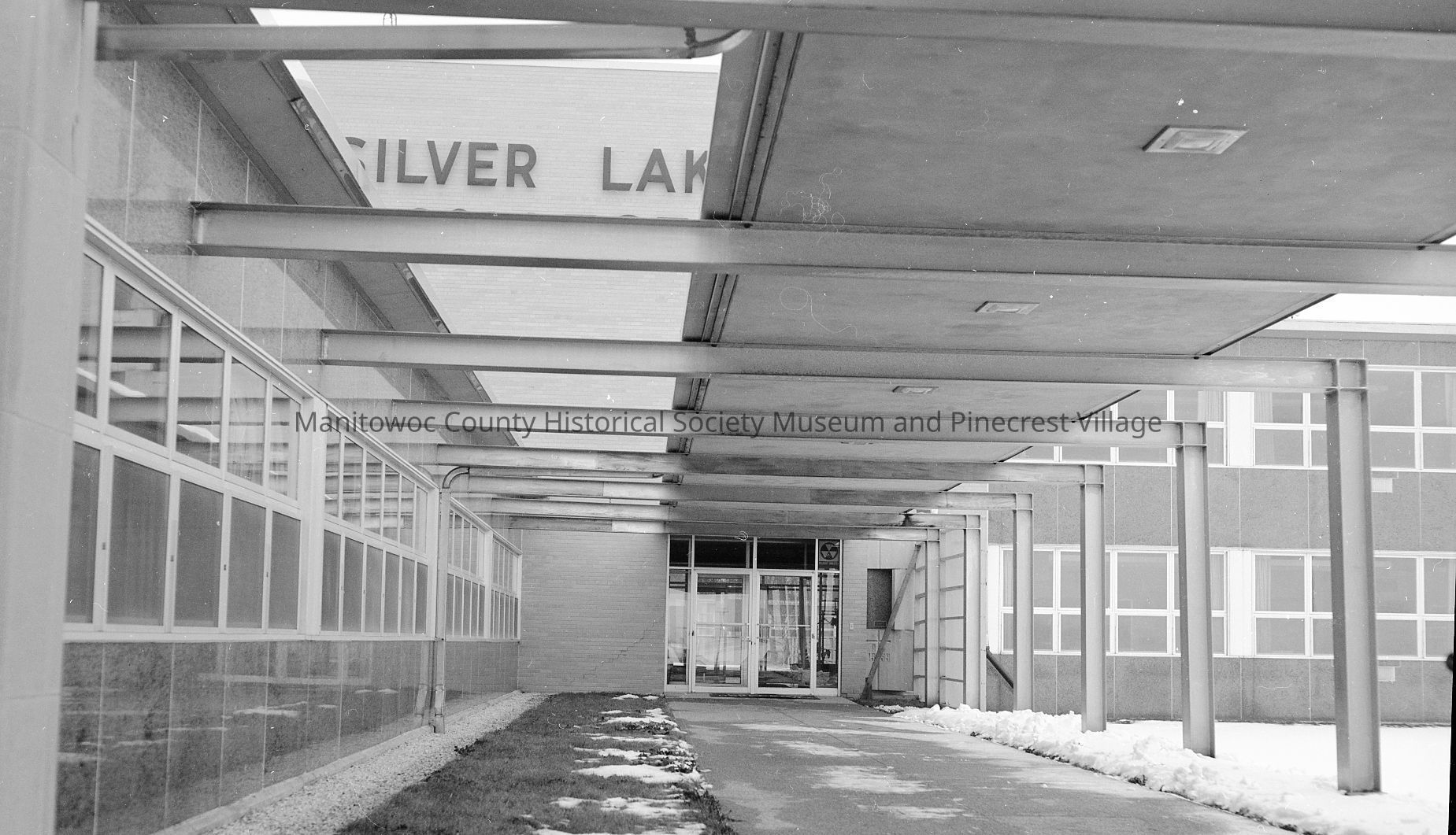 Silver Lake College, Highway 151 & Alverno Road Manitowoc, looking toward front entrance. Photograph taken on January 6th, 1975.Made/Created