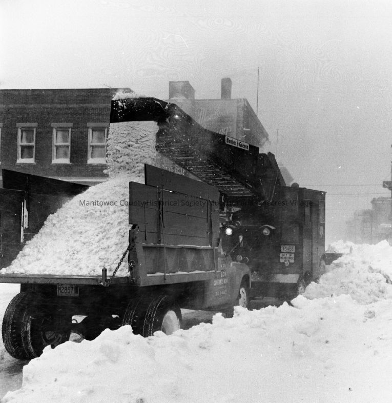 Snow removal from 900 block of South 8th Street Manitowoc. Photograph taken in March 1964.