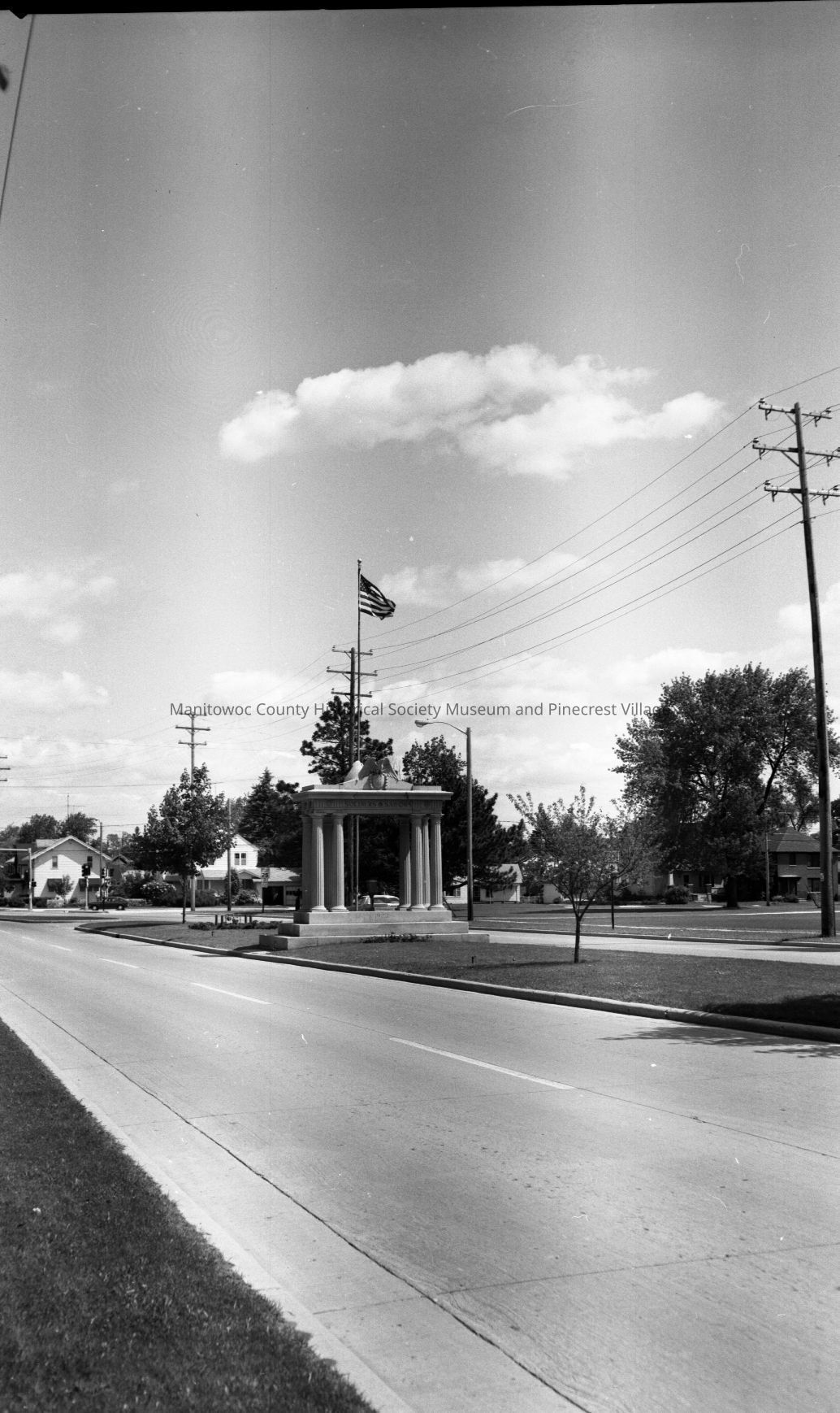 Memorial - Soldiers/Sailors monument, North 18th Street Manitowoc looking north toward Michigan Ave. Photograph taken on June 7th, 1983.Made/Created