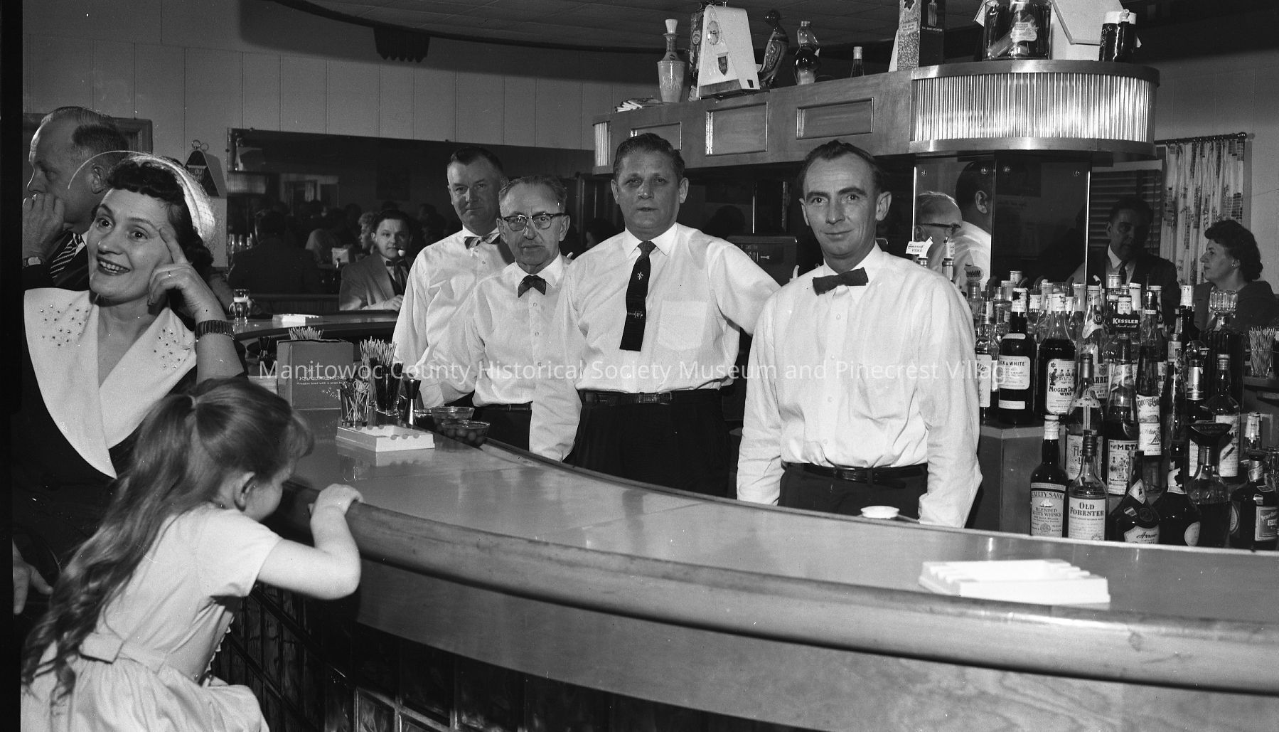Sorenson's Hilltop Casino bar on Highway 141 in Francis Creek. Orvin Sorenson, owner, in front. Photograph taken on April 15th, 1961.Made/Created