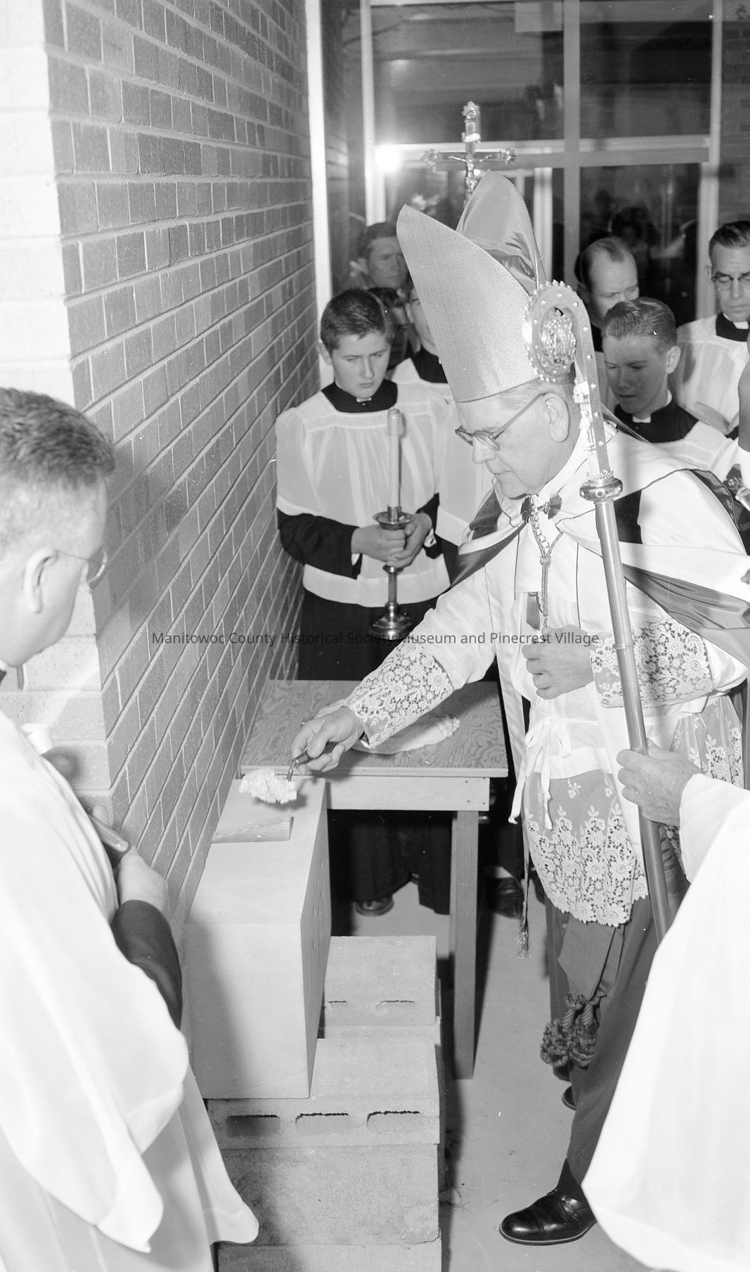 St Michael Catholic School, Whitelaw, dedication blessing of cornerstone. Photograph taken on November 2nd, 1959.Made/Created