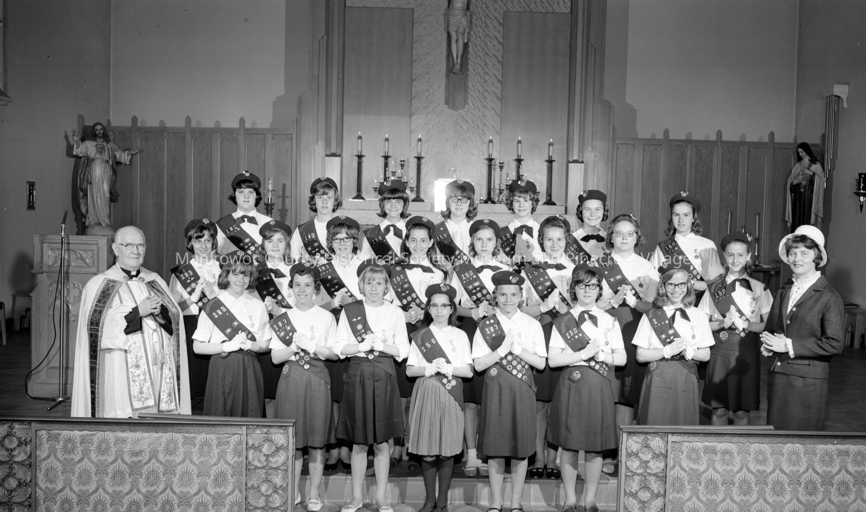 St. Andrew Catholic church, 1818 South 14th Street Manitowoc; girl scout Marion awards. Photograph taken in 1966.Made/Created