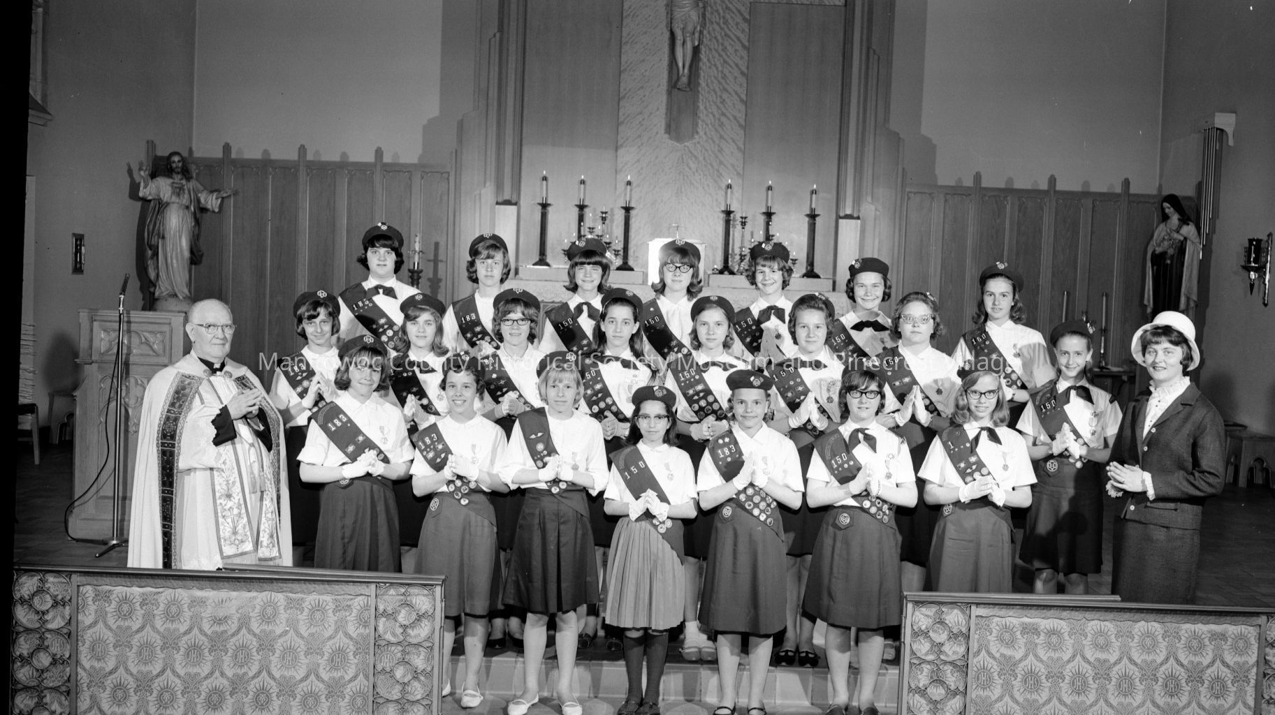 School - St. Andrew Catholic, 1808 South 14th Street Manitowoc; girl scout troop. Photograph taken on May 25th, 1965.Made/Created