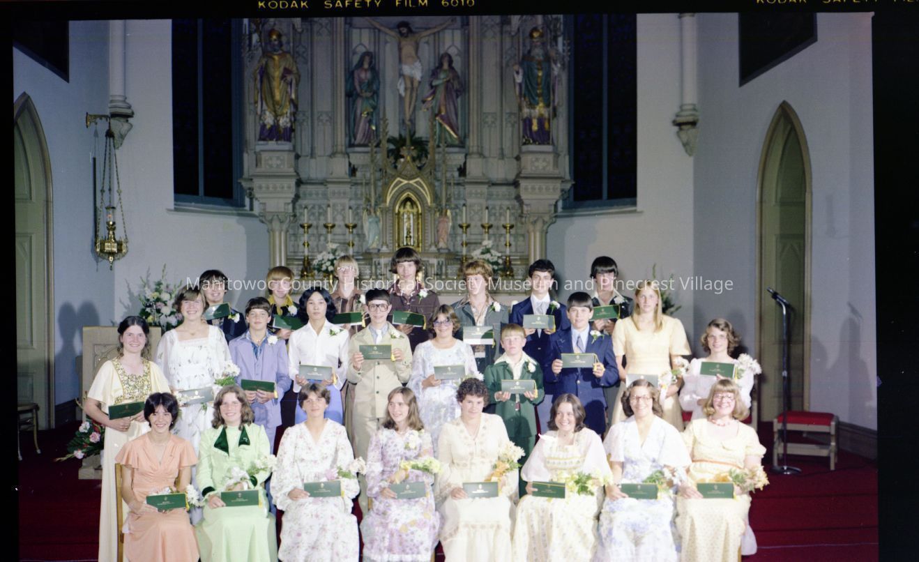 School - St. Boniface Catholic, 1001 Marshall Street Manitowoc, 8th grade graduation. Photograph taken in June 1977.Made/Created