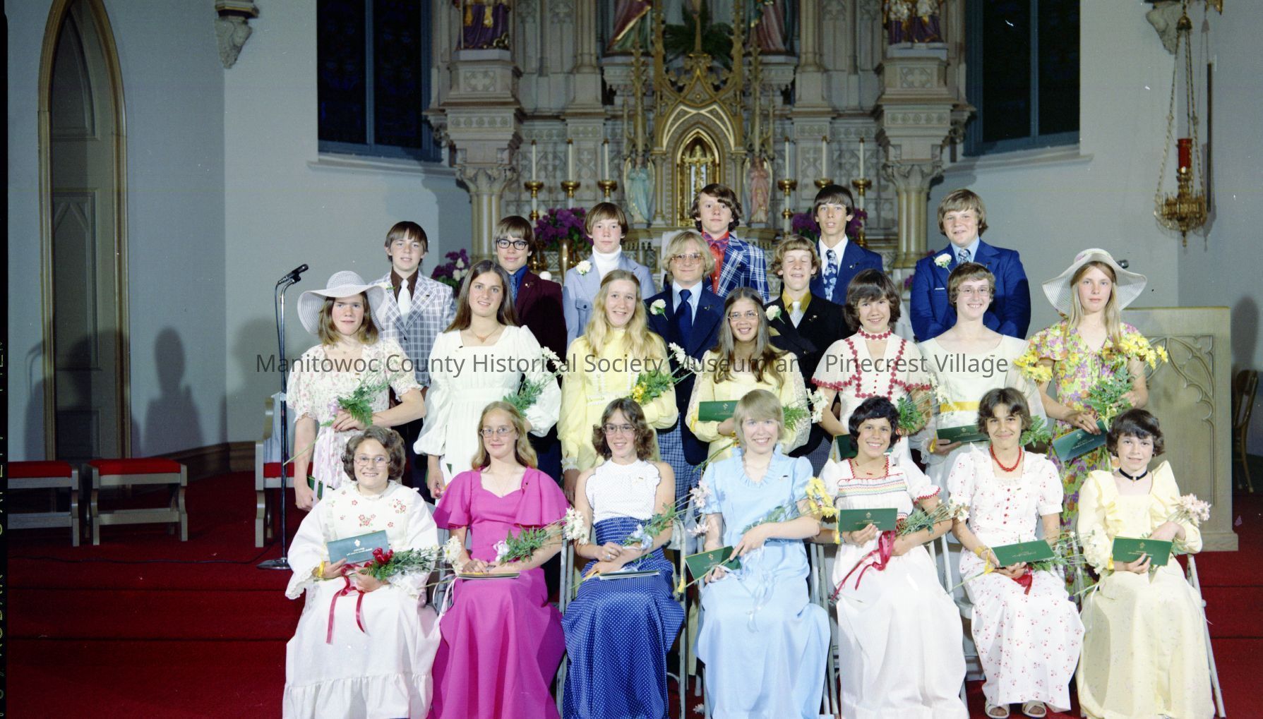 School - St. Boniface Catholic, 1001 Marshall Street Manitowoc, 8th grade graduation. Photograph taken on June 8th, 1975.Made/Created