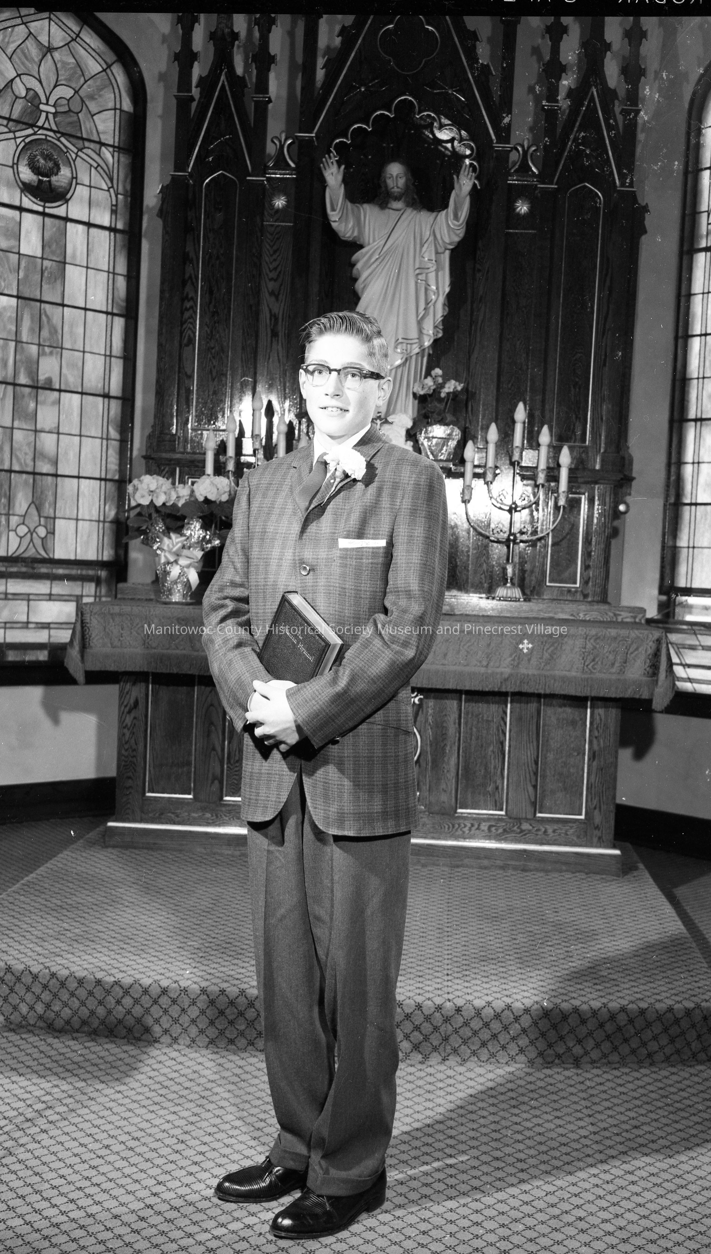 Paul Radue confirmation at St. Johns Lutheran Church, Maribel. Photograph taken on April 10th, 1960.Made/Created