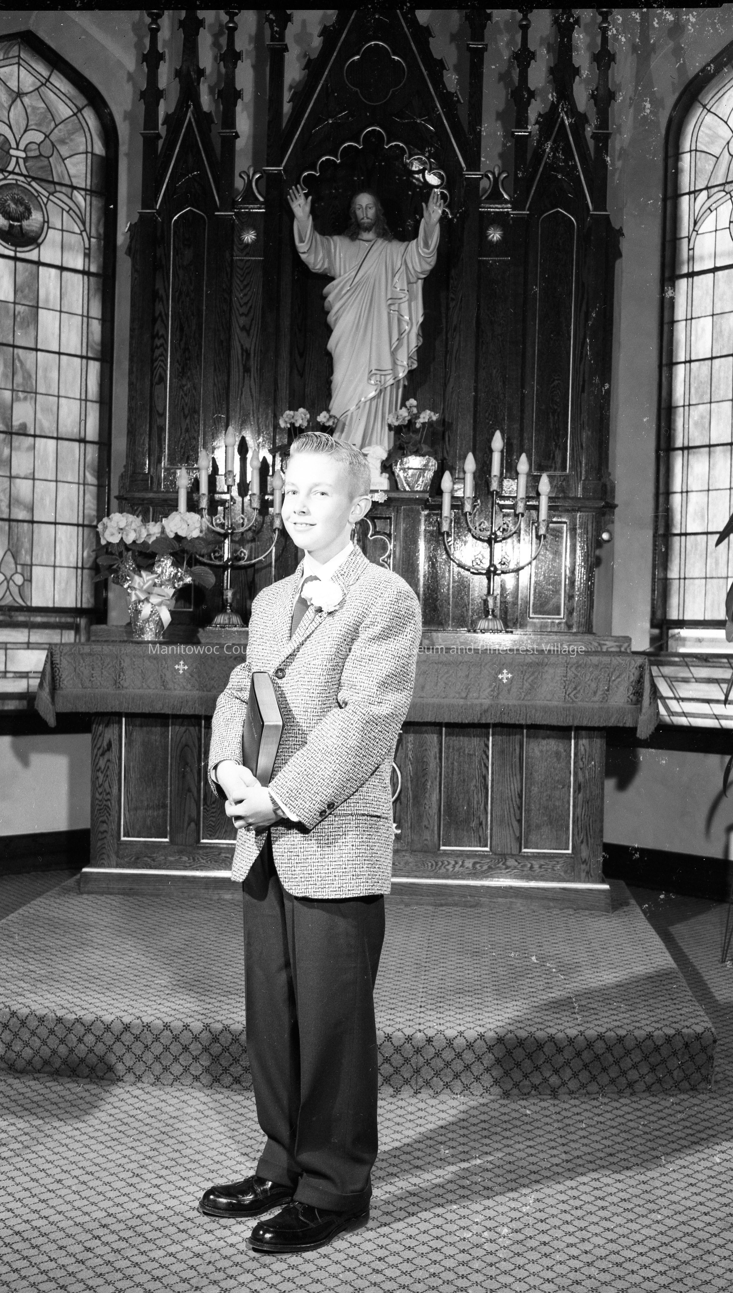 Reinhard Bruss confirmation at St. Johns Lutheran Church, Maribel. Photograph taken o nApril 10th, 1960.Made/Created