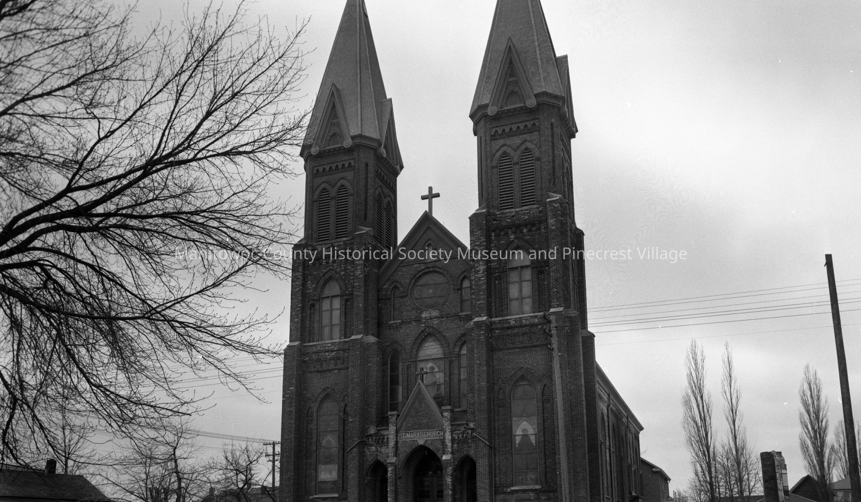 St. Mary Catholic church, 2101 Marshall Street Manitowoc; old school at right torn down and Del's Welcome Inn, 2015 Marshall Street at left. Photograph taken on April 9th, 1959.Made/Created