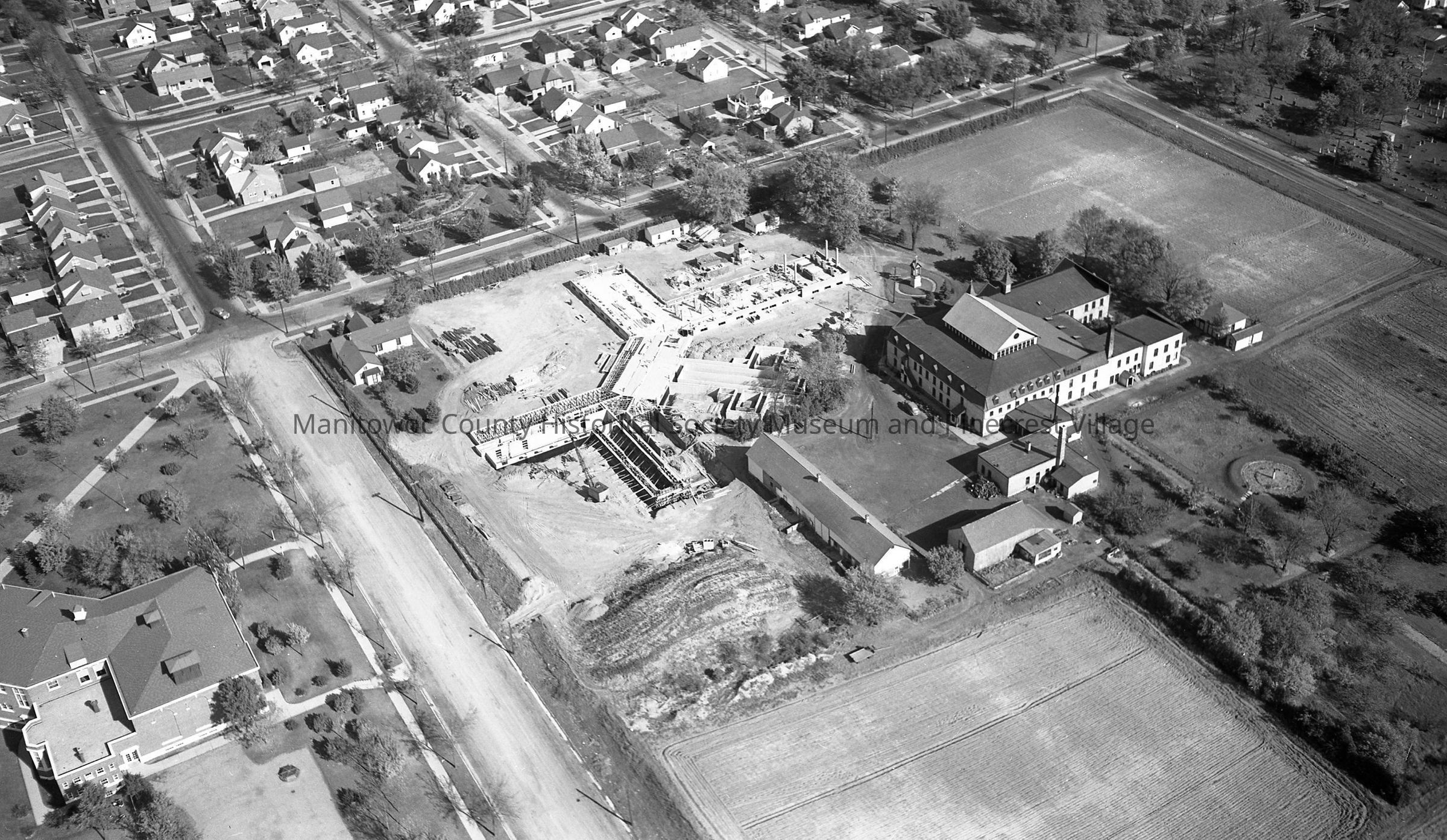 Aerial: St. Mary Home for the Aged, South 21st & Division Street Manitowoc. Washington Jr. High School is at lower left corner.