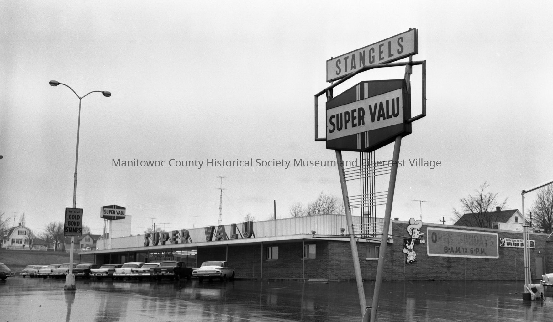 Stangel Super Valu store, 1920 South 10th Street Manitowoc. Home at left is 1912 South 12th Street. Photograph taken on April 14th, 1961.Made/Created