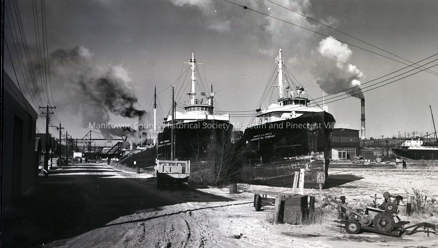 Tankers Illinois & Michigan docked at Manitowoc Shipbuilding for winter lay-up. Photograph taken on January 13th, 1964.Made/Created