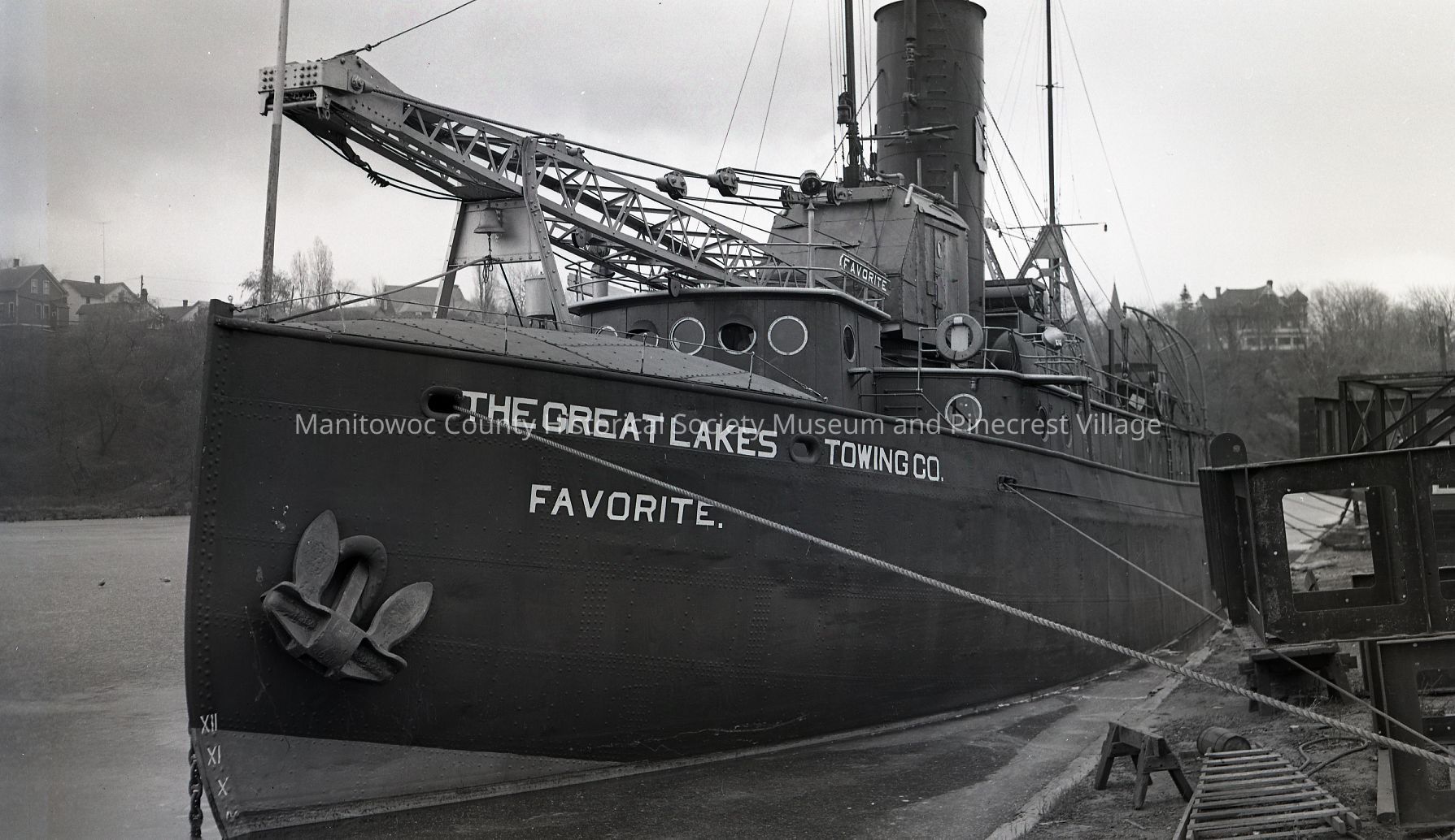 The Tug Favorite was a salvage tug that was famous all over the Great Lakes. Docked at Manitowoc Shipbuilding. Photograph taken November 3rd, 1951.Made/Created