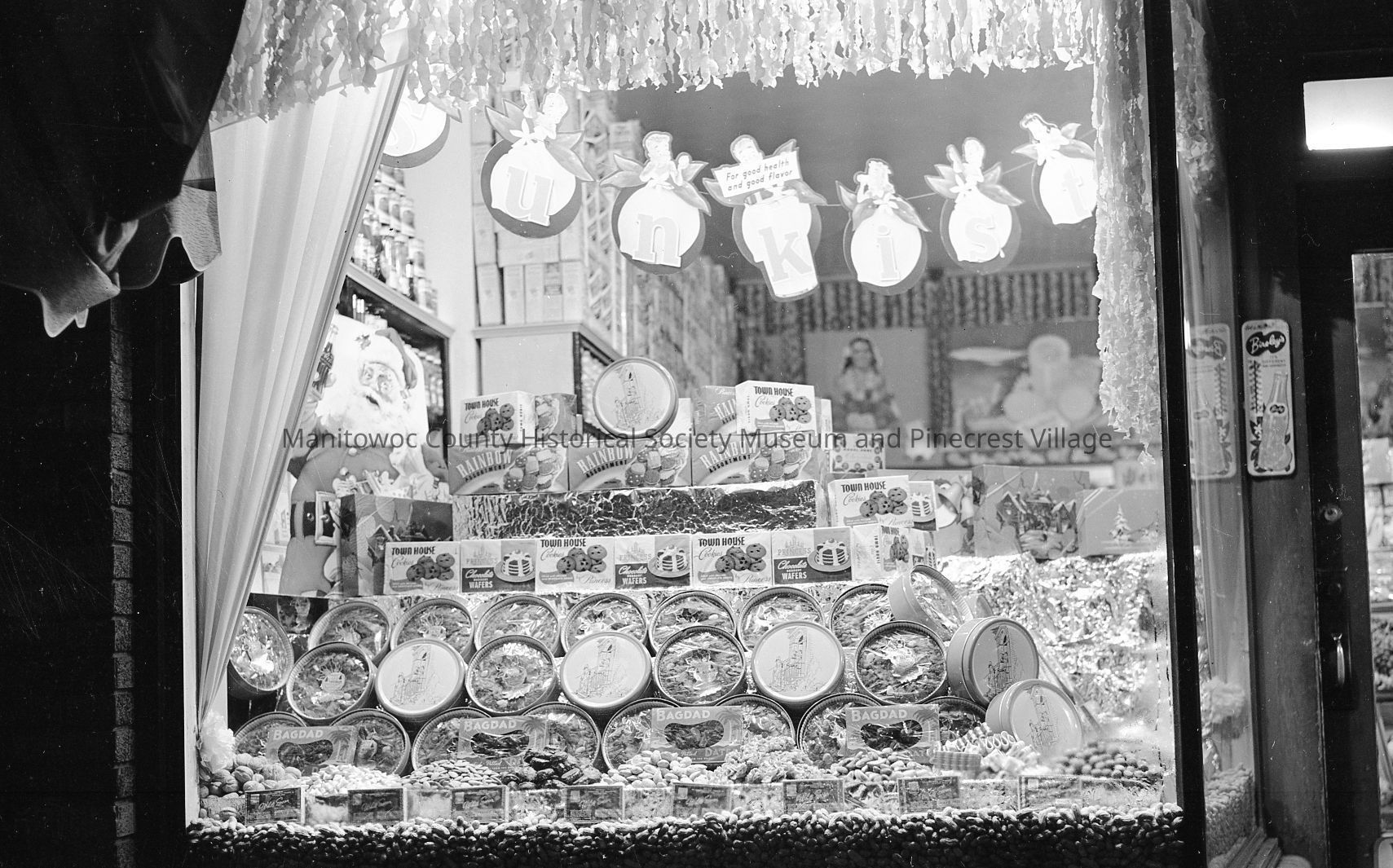 U-Need Grocery, 1410 Washington Street Manitowoc, display window. Photograph taken in 1952.