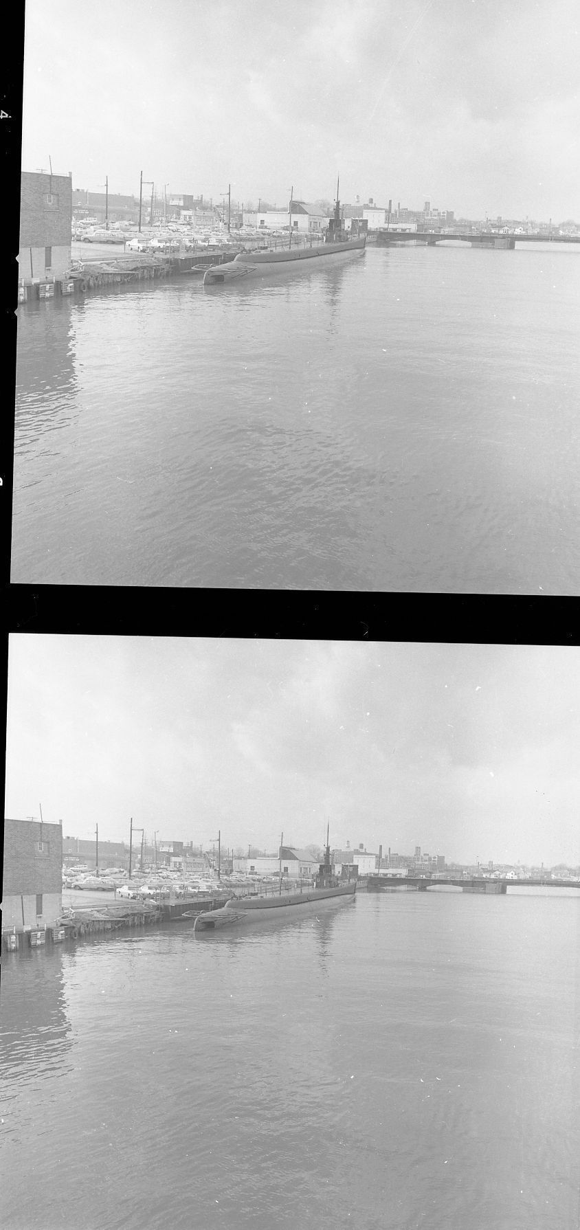 USS Cobia at her originbal berth along 800 Block Quay Street Manitowoc. Photo taken from 8th Street bridge. Circa 1971.Made/Created