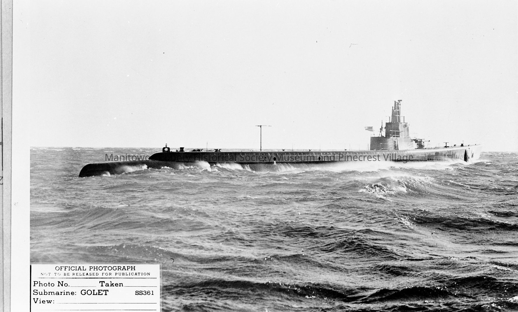 USS Golet on Lake Michigan during trials. Built and launched in Manitowoc, August 1943. Photograph taken in August 1943.