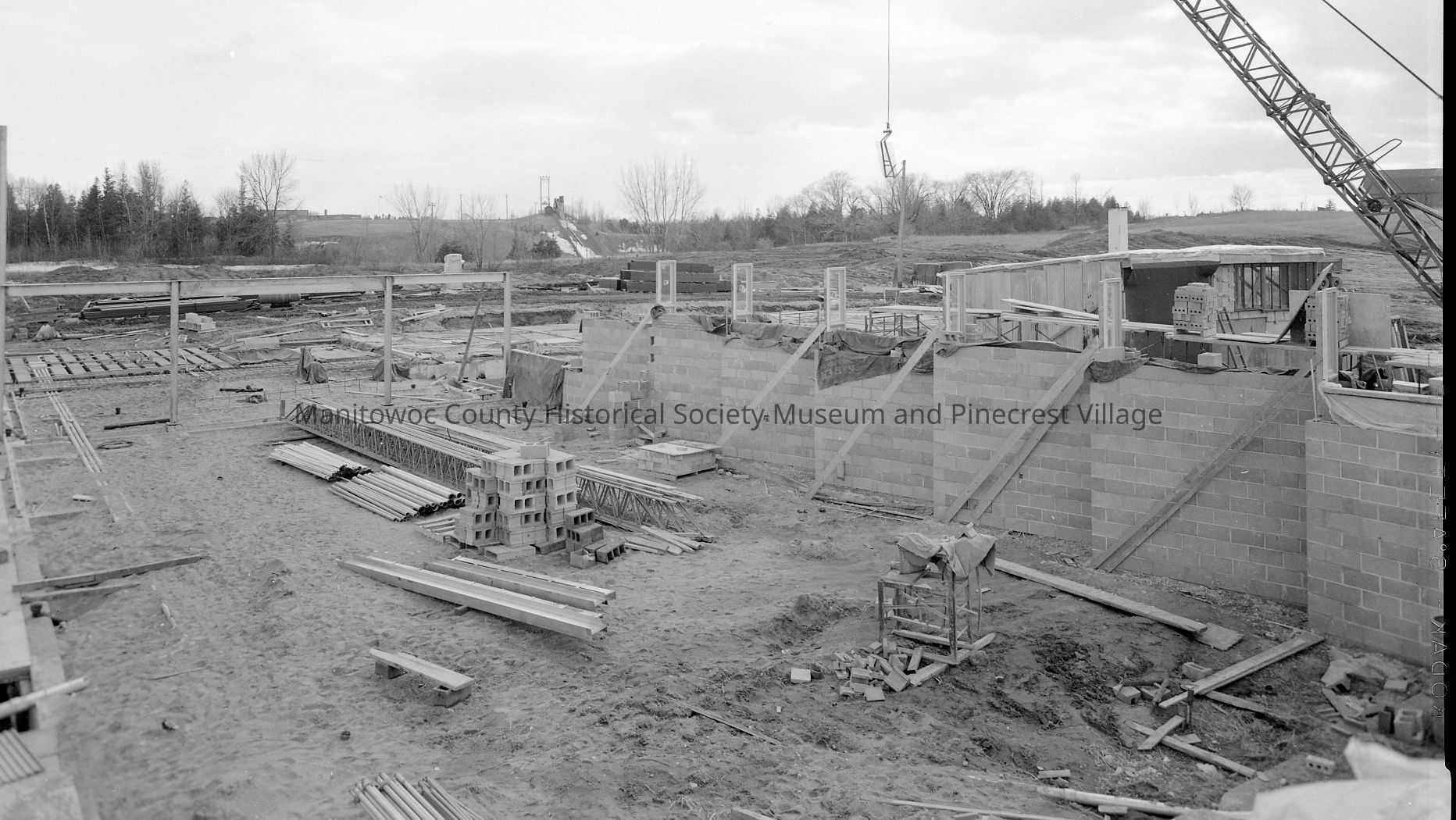 UW-Manitowoc, 705 Viebahn Street, wall work progress. Photograph taken on April 1st, 1962.