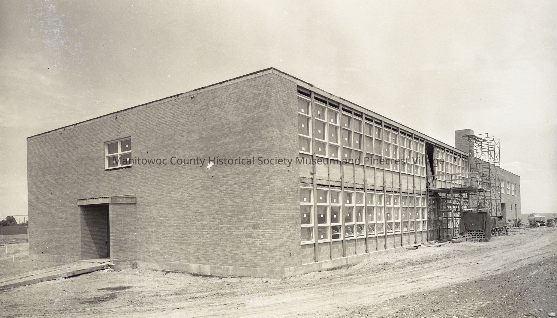 UW-Manitowoc, 705 Viebahn Street, looking at southside student entrance. Photograph taken on June 2nd, 1962.