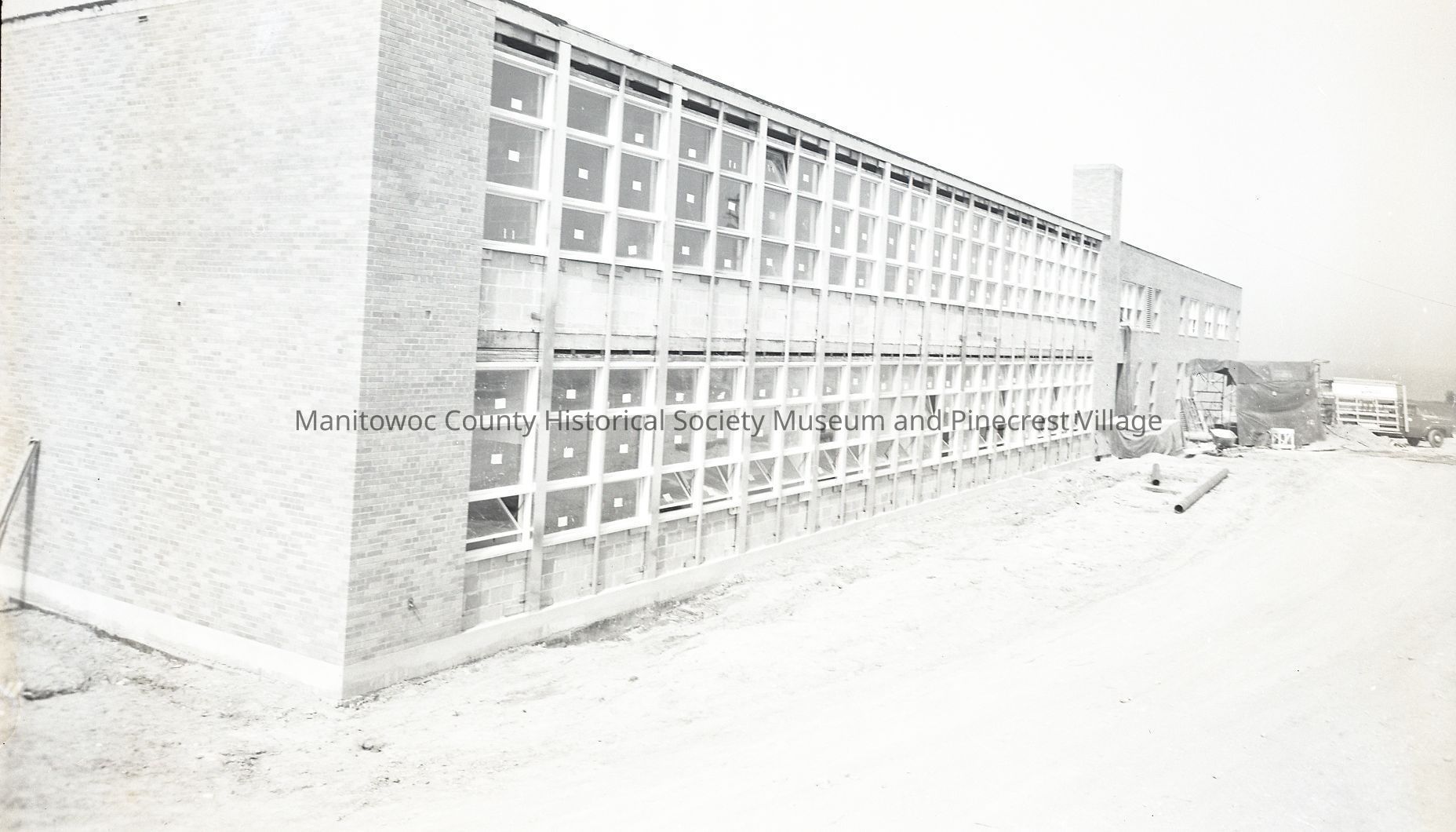 UW-Manitowoc, 705 Viebahn Street, southside as work nears completion. Photograph taken on June 15th, 1962.