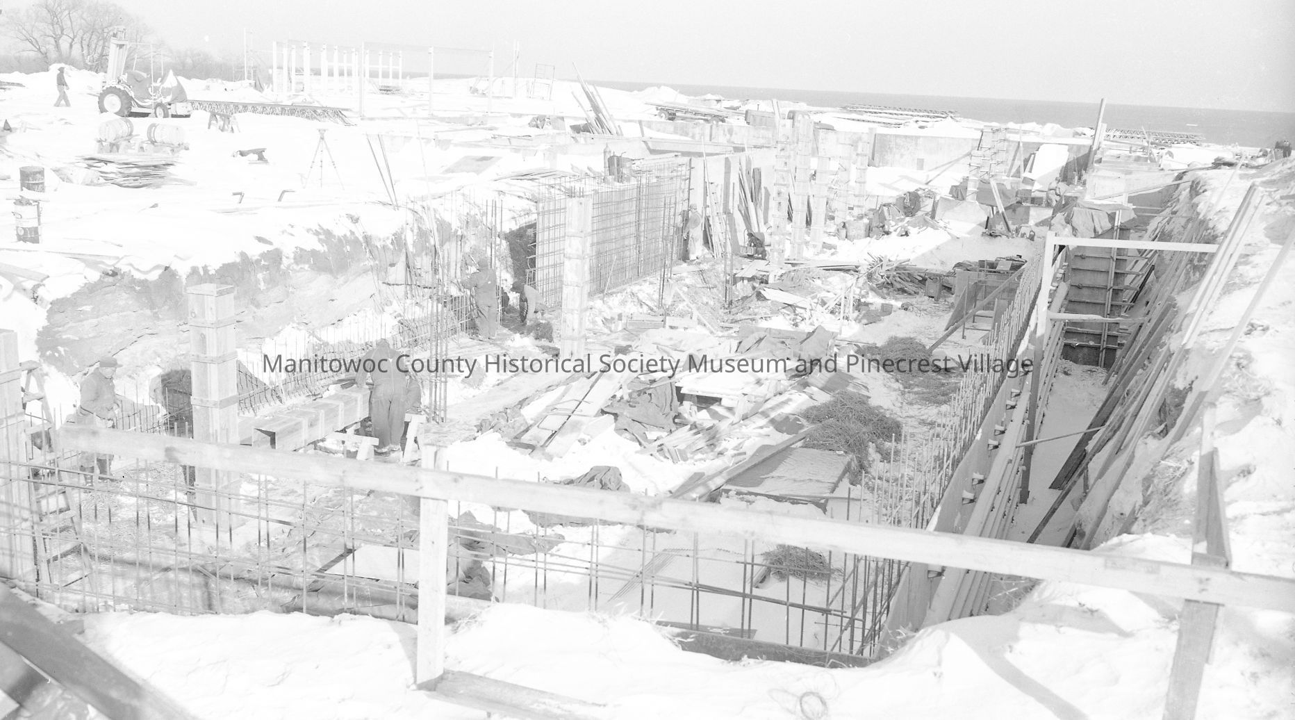 UW-Manitowoc, 705 Viebahn Street, brick work started, looking east. Photograph taken on February 20th, 1962.
