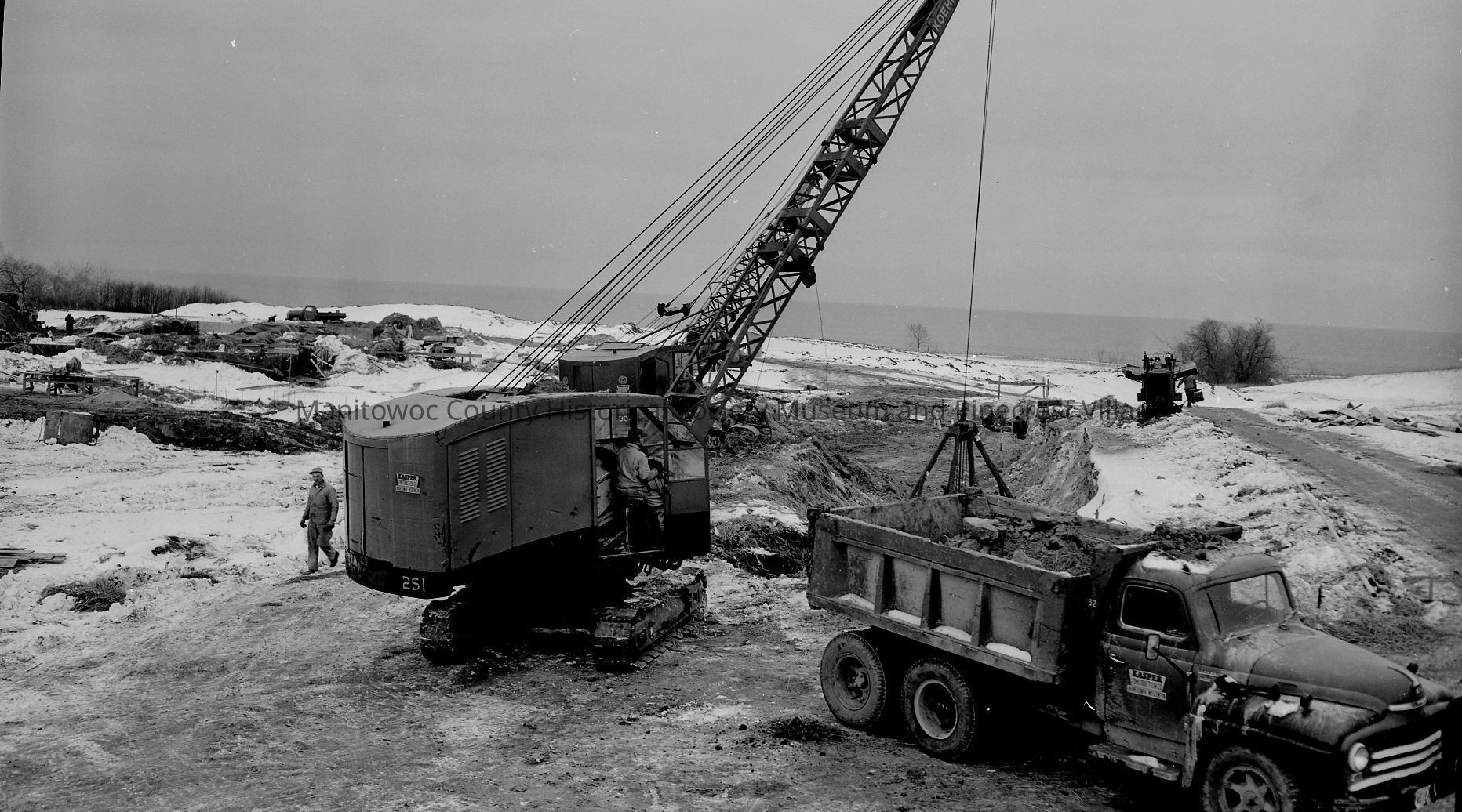 UW-Manitowoc, 705 Viebahn Street, excavating work looking east. Photograph taken on December 19th, 1961.