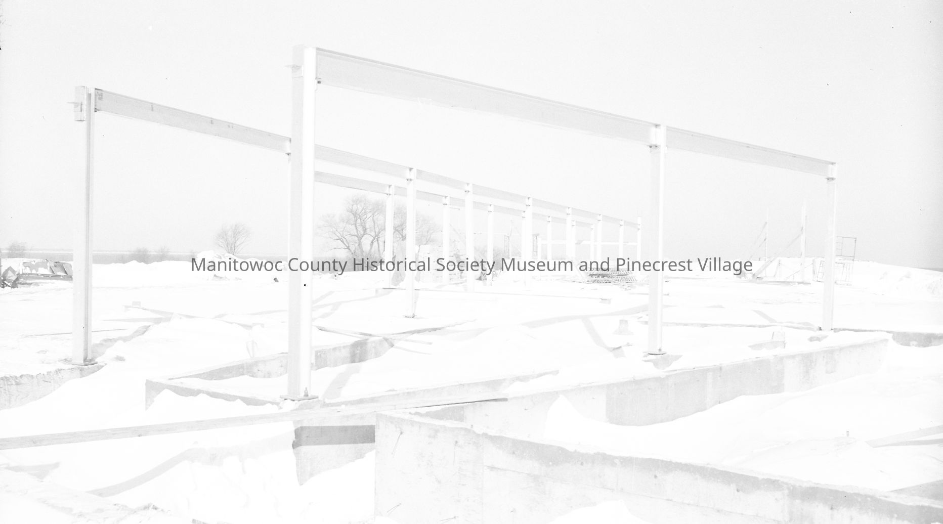UW-Manitowoc, 705 Viebahn Street, steel framing started, looking east. Photograph taken on February 20th, 1962.