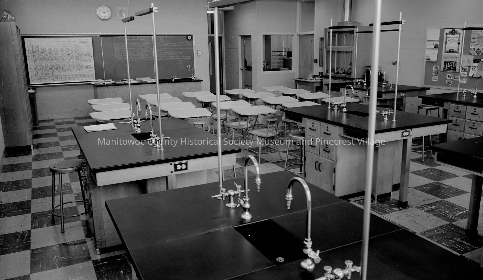 Valders High School chemistry room in new addition. Photograph taken on November 30th, 1959.
