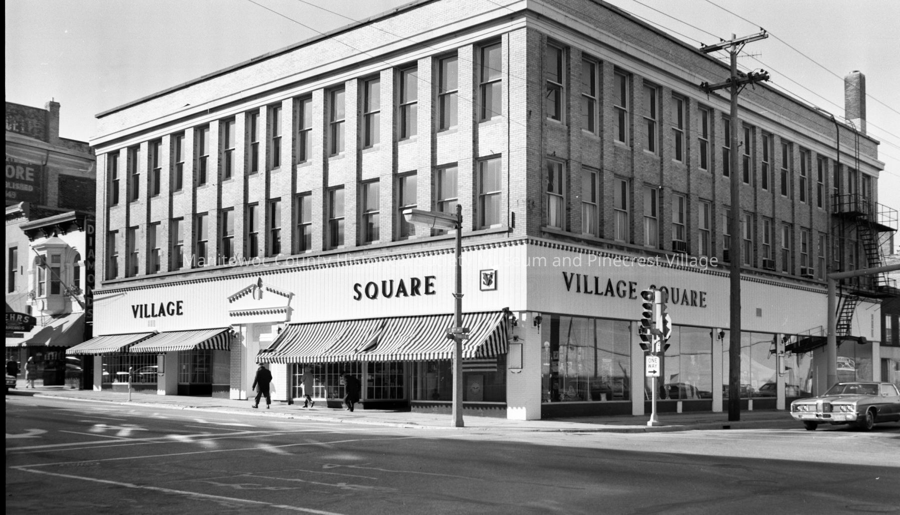 Village Square shops, 902 South 8th Street Manitowoc; old J.C. Penny building. Photograph taken on November 6th, 1973.Made/Created