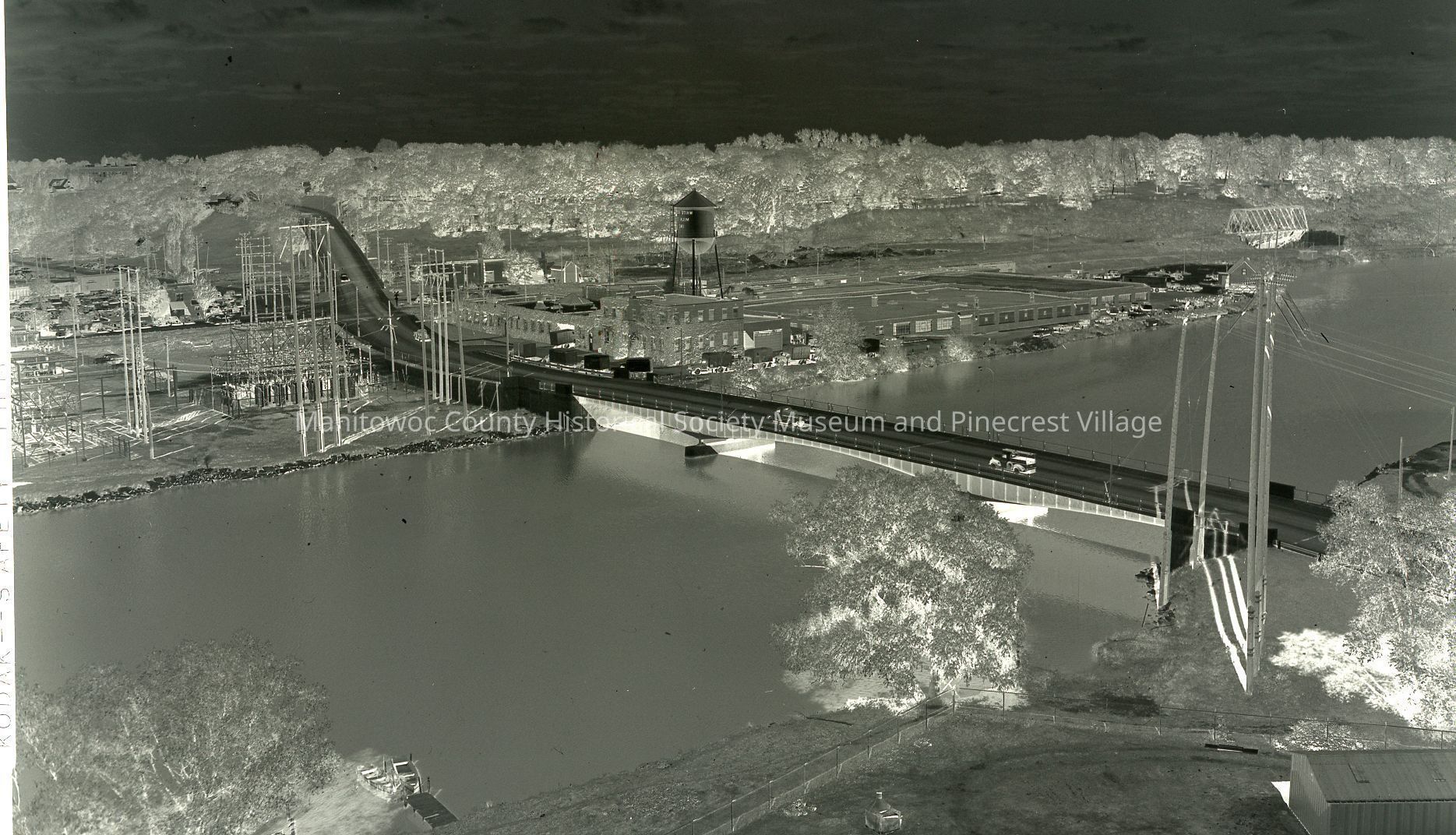 Whitehouse Milk Company, 102 Revere Drive Manitowoc - with 21st Street bridge and viaduct. Photo taken from Wisconsin Malting Company. Photograph taken on October 7th, 1954.Made/Created
