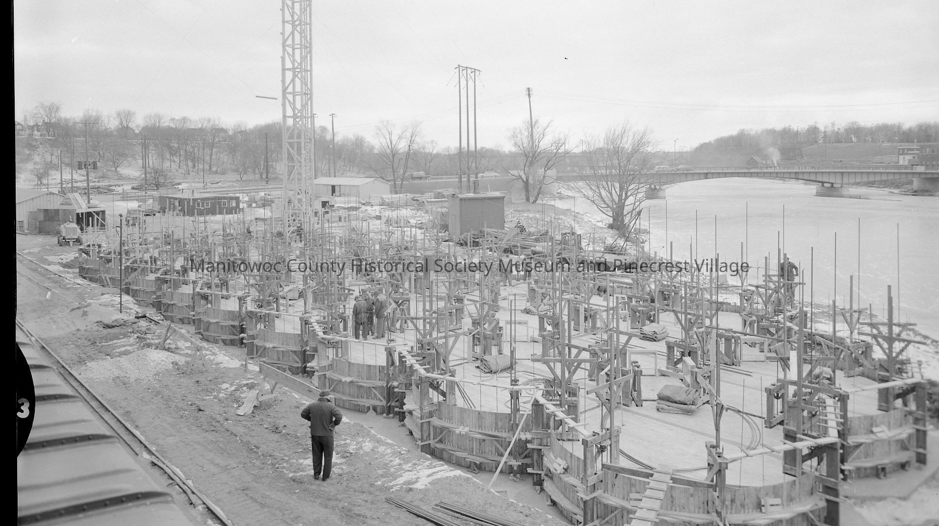 WI Malting Company, 633 South 20th Street Manitowoc, getting ready to pour new silos. Photograph taken on December 9th, 1957.Made/Created