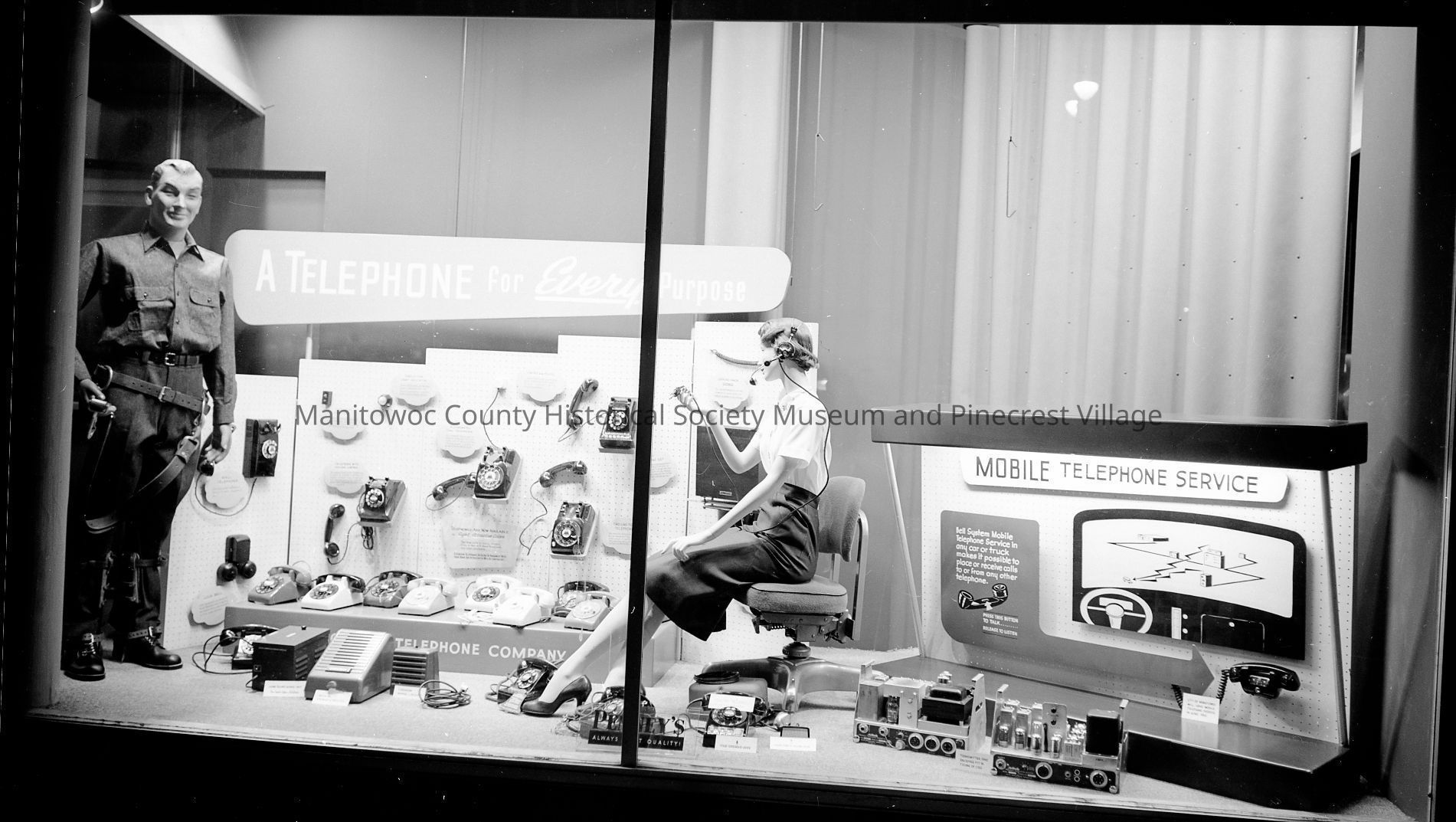 WI Telephone Company, 820 Buffalo Street Manitowoc, display at Manitowoc County Fair. Photograph taken on August 26th, 1954.Made/Created
