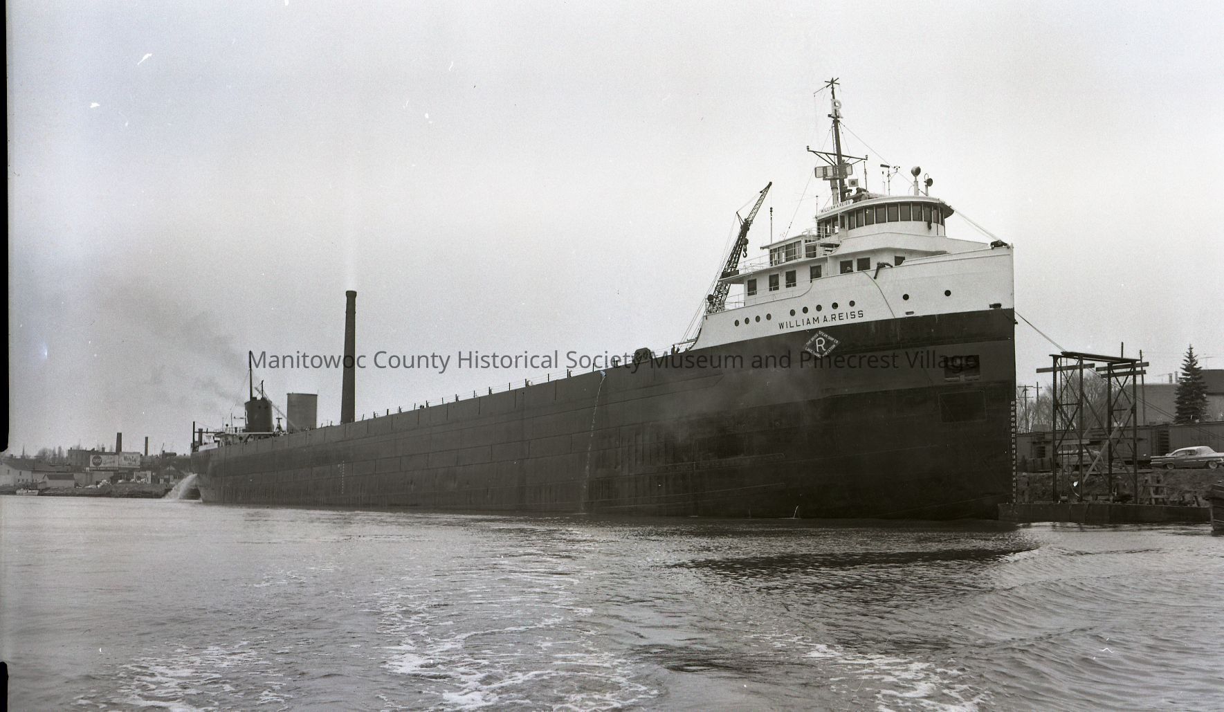 William A. Reiss being towed up river to Manitowoc Shipbuilding to be deepened 7 feet 6 inches. Photograph taken in 1963.Made/Created