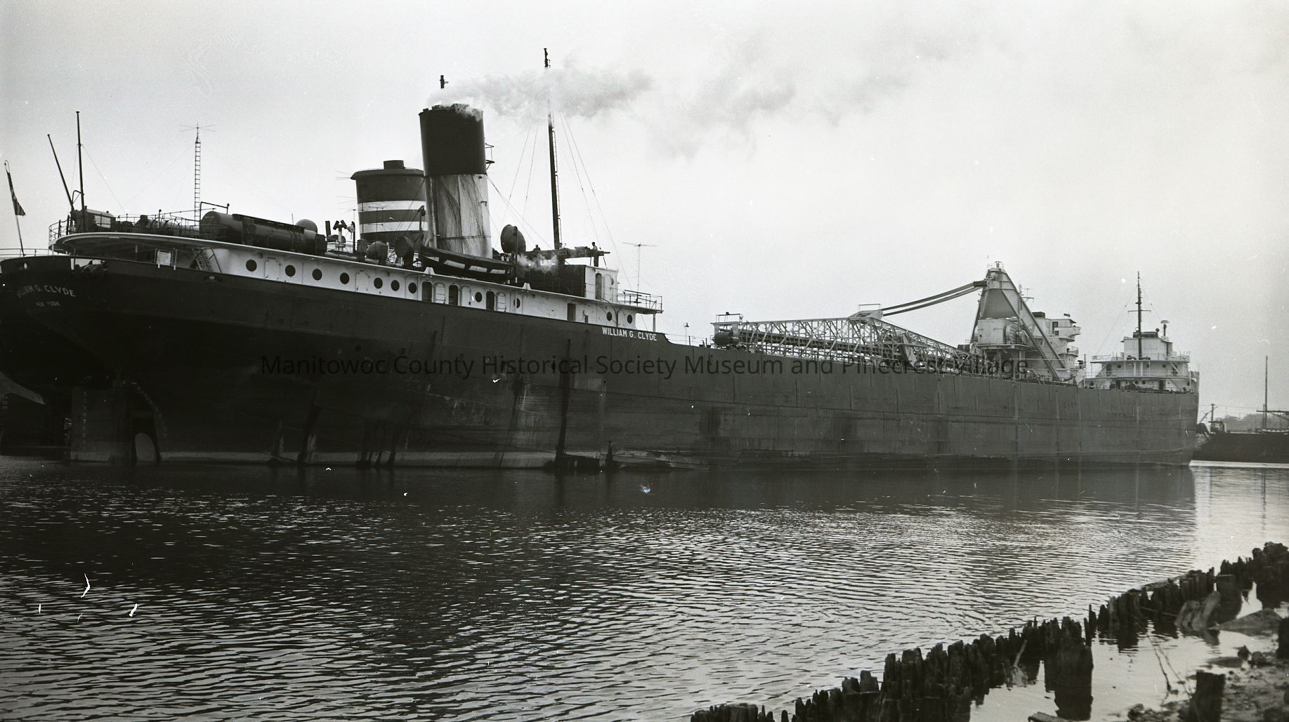 Straight back William G. Clyde outside and self-unloader Detroit Edison docked up river for winter lay-up. Photograph taken on November 7th, 1960.Made/Created