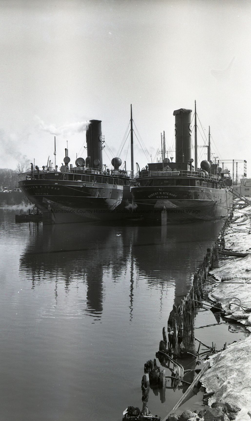 William P. Cowan & Robert W. Stewart at winter berth in Manitowoc River. Photograph taken on March 29th, 1956.Made/Created