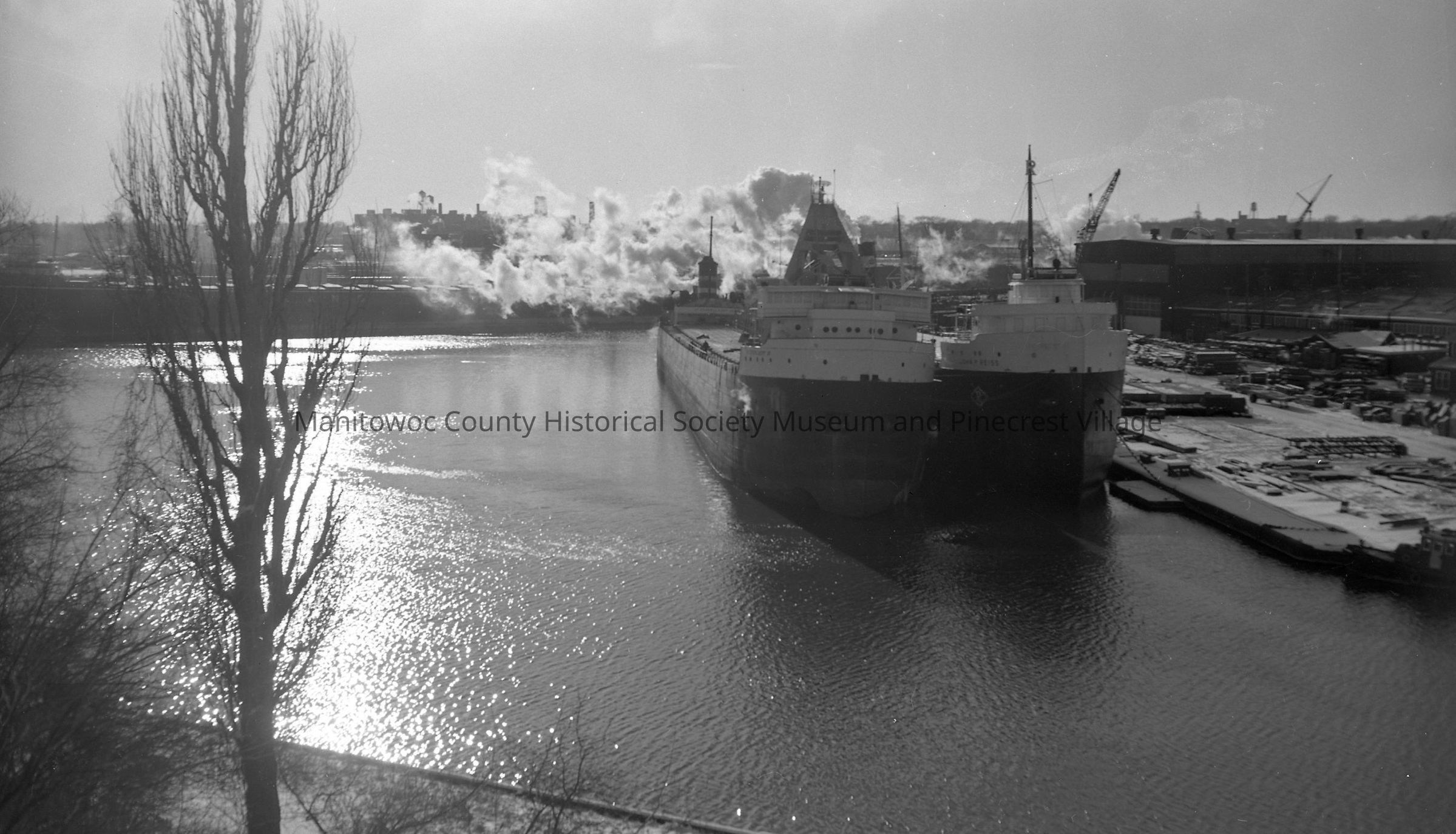 Winter Fleet, Manitowoc Shipbuilding. At left "J.F. Schoellkopf Jr." and right "John Reiss"